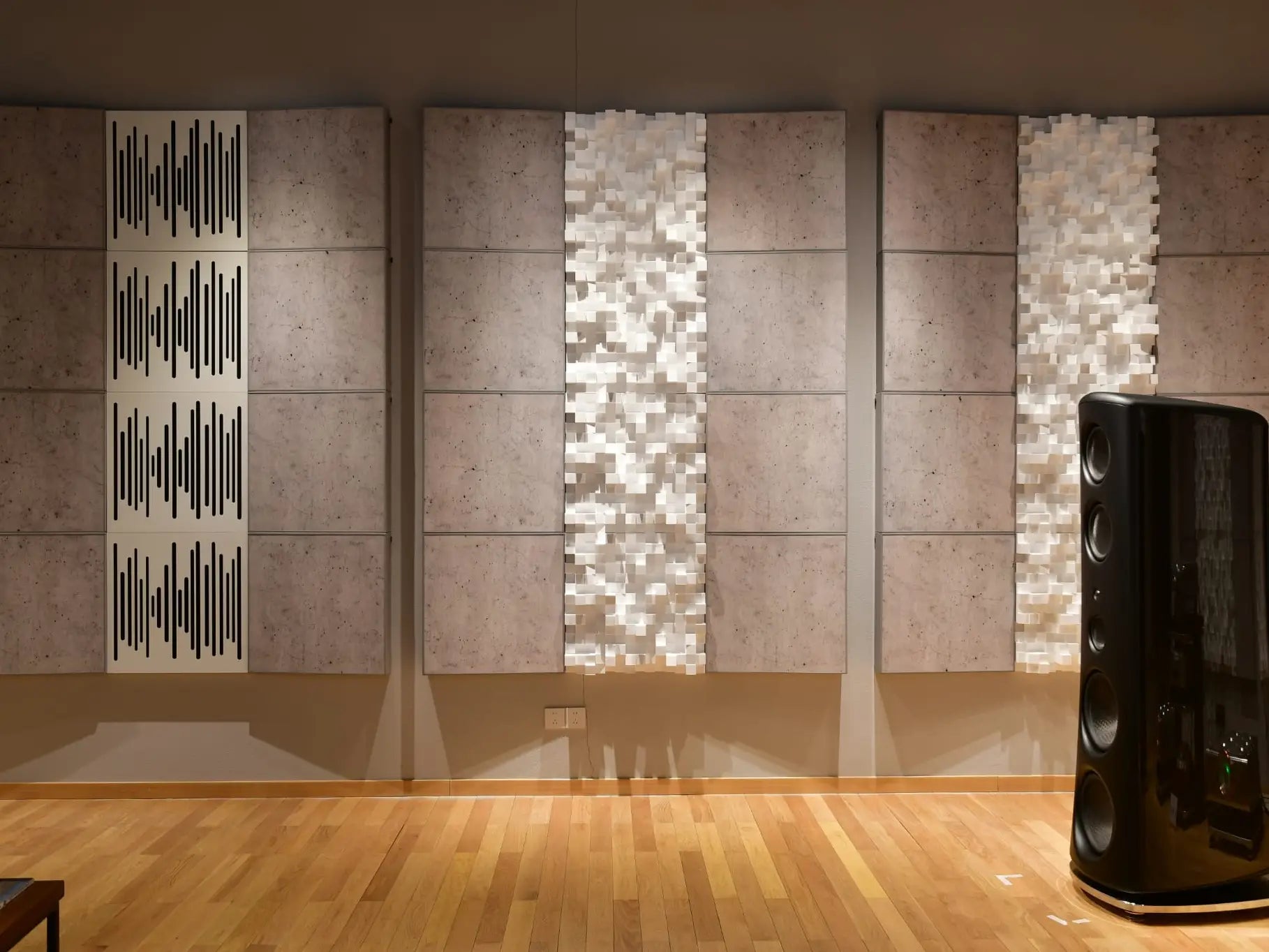 - Multifuser DC4: Placed strategically between the Cinema Forte VMT panels, these striking white, three-dimensional EPS diffusers break up high-frequency reflections. They not only expand the perceived soundstage and bring a sense of airiness to the music but also add a captivating sculptural element to the walls.