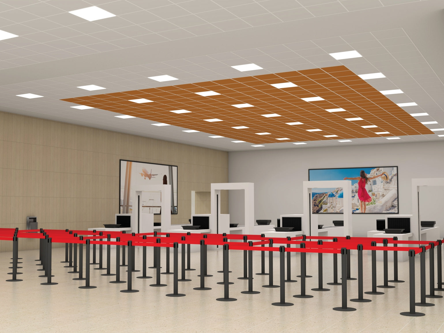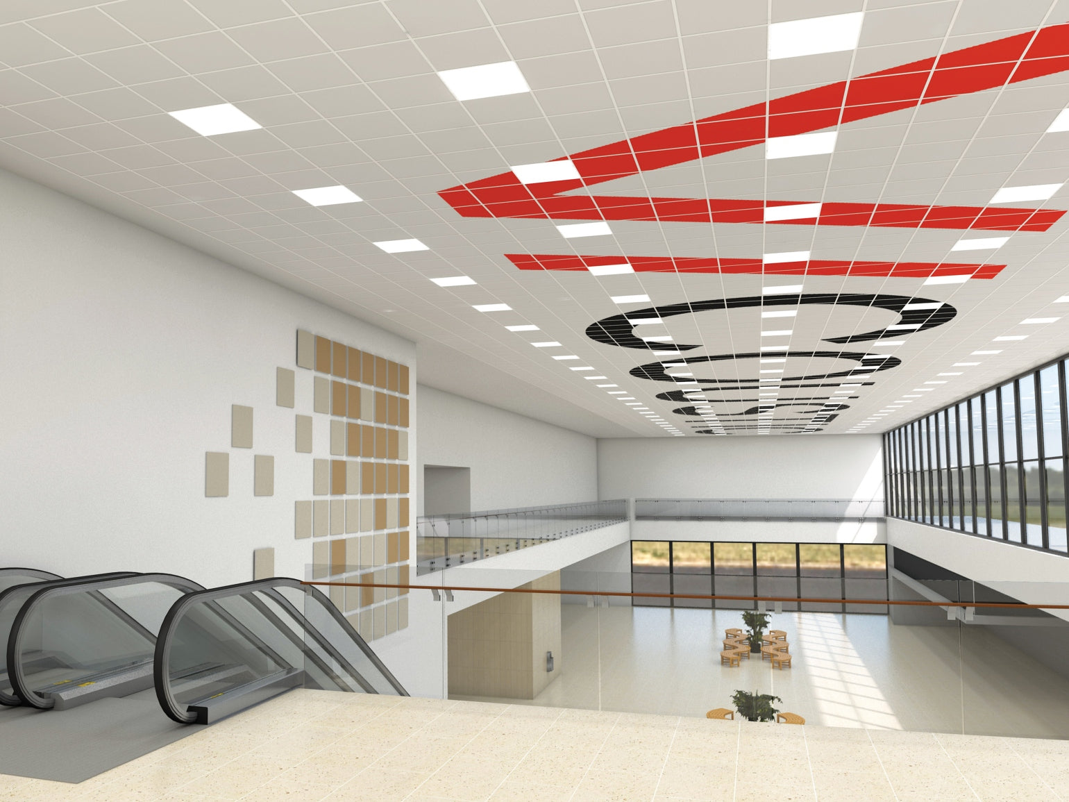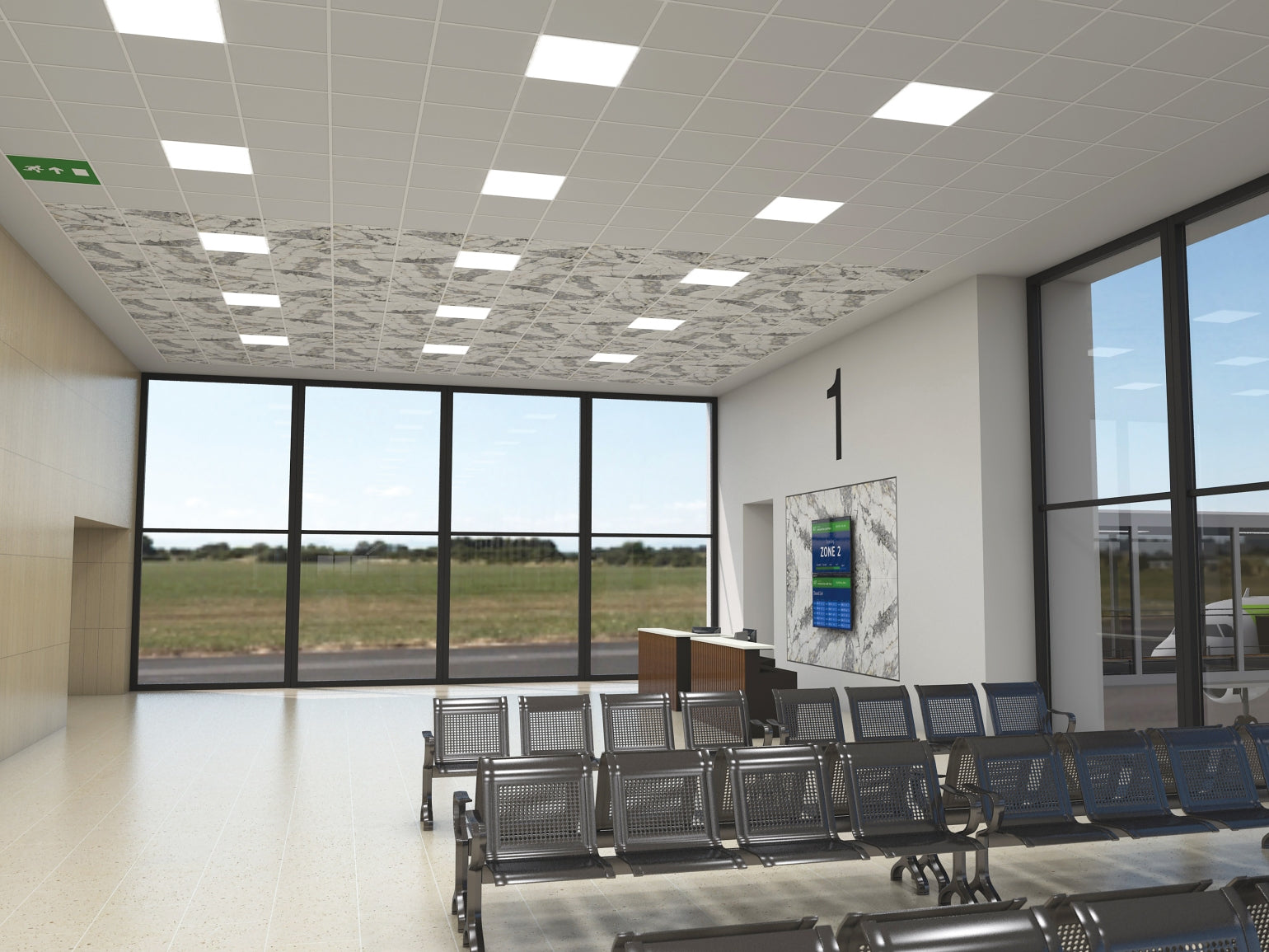 For wall installation or T-Bar systems, Flat Panel VMT may just be the ideal solution for an airport. Flat Panel VMT is a sound absorbing panel, extremely efficient in middle and high frequencies, where speech occurs, making it ideal for spaces where great concentrations of people are expected such as in airports.