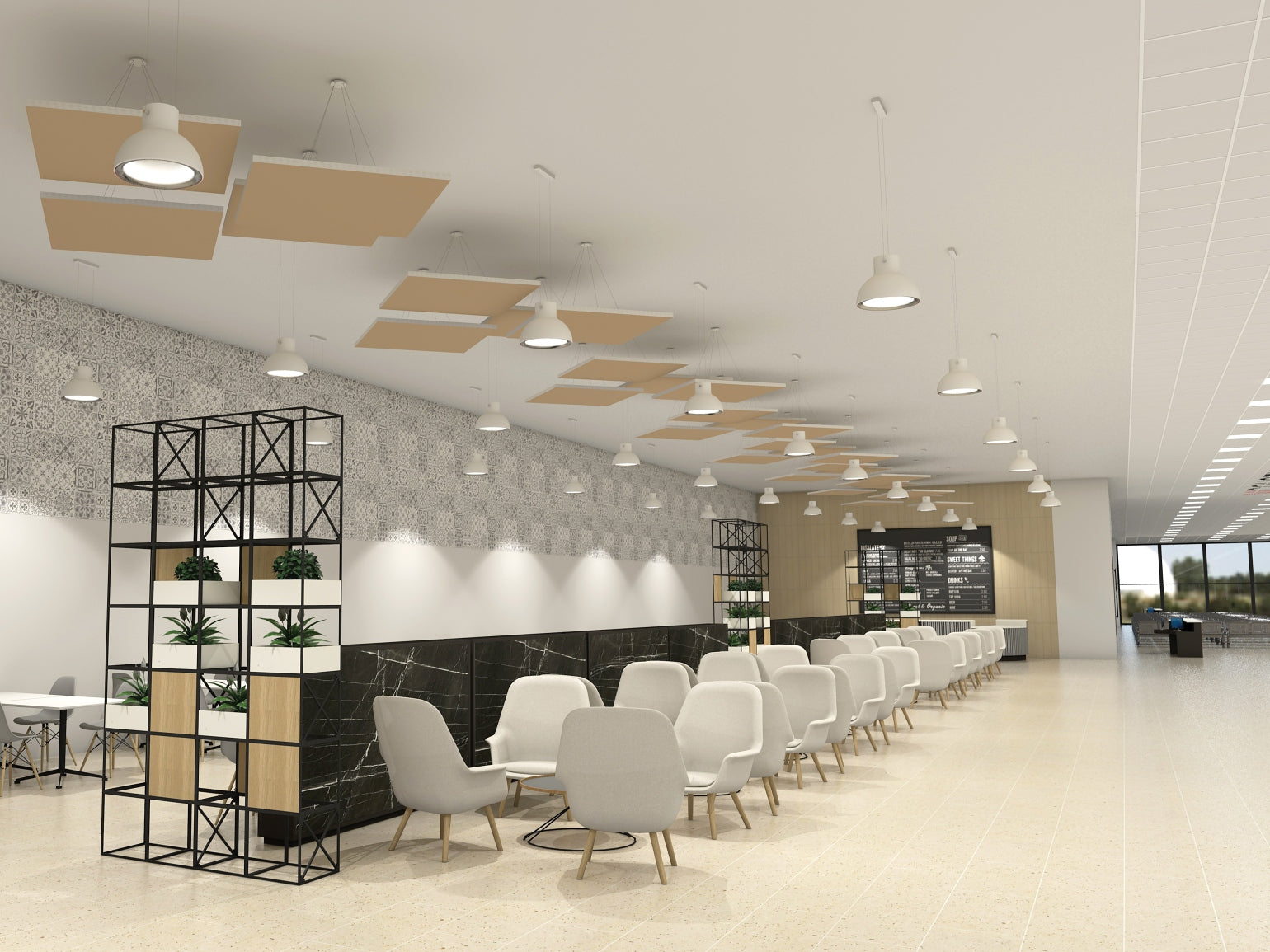 The key point to take into account when designing the acoustics of an airport is to absorb the maximum amount of the, often huge, acoustic energy generated by all travellers and workers in the room. This will both enhance the control of noise build-up and speech intelligibility from the airport’s Public Address (PA) system.