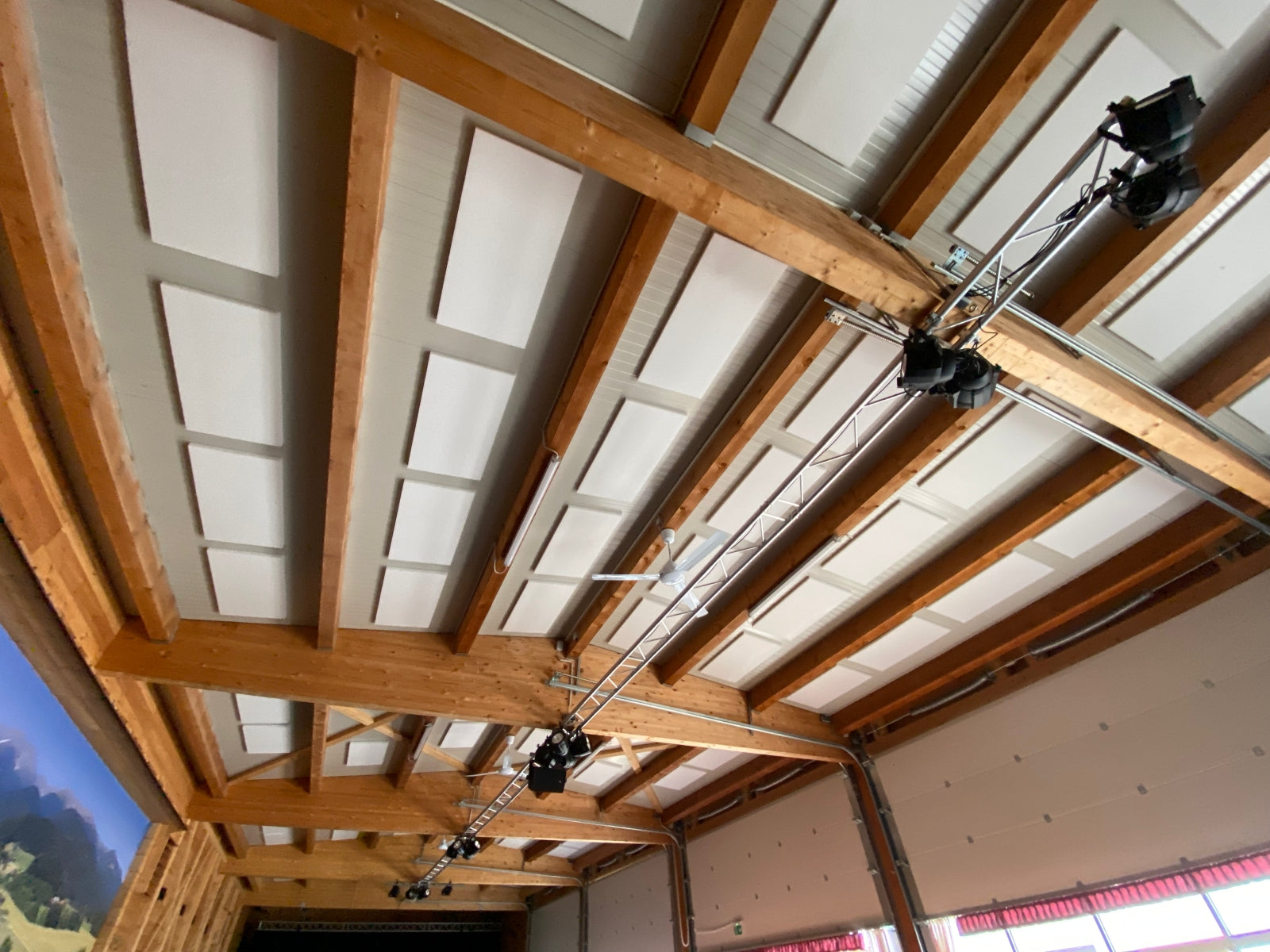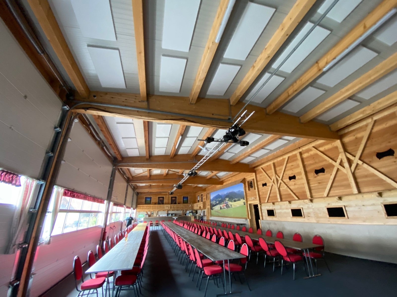 A former Stables in the Austrian Alpes was recovered to be a multipurpose space: the Seckau Alpine Event Hall, where conventions, concerts and a Christmas market take place. It was a very reverberant space, which required acoustic treatment. The solution found was Flat Panel PET evenly distributed throughout the ceiling. The result was very satisfactory.