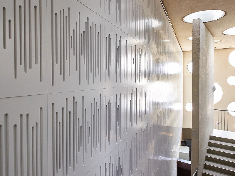 The Open Space to access Ancienne Belgique’s Auditorium for Concerts and Music shows was treated with Wavewood on the walls. The flagship product became both an acoustic solution and a symbol for music.