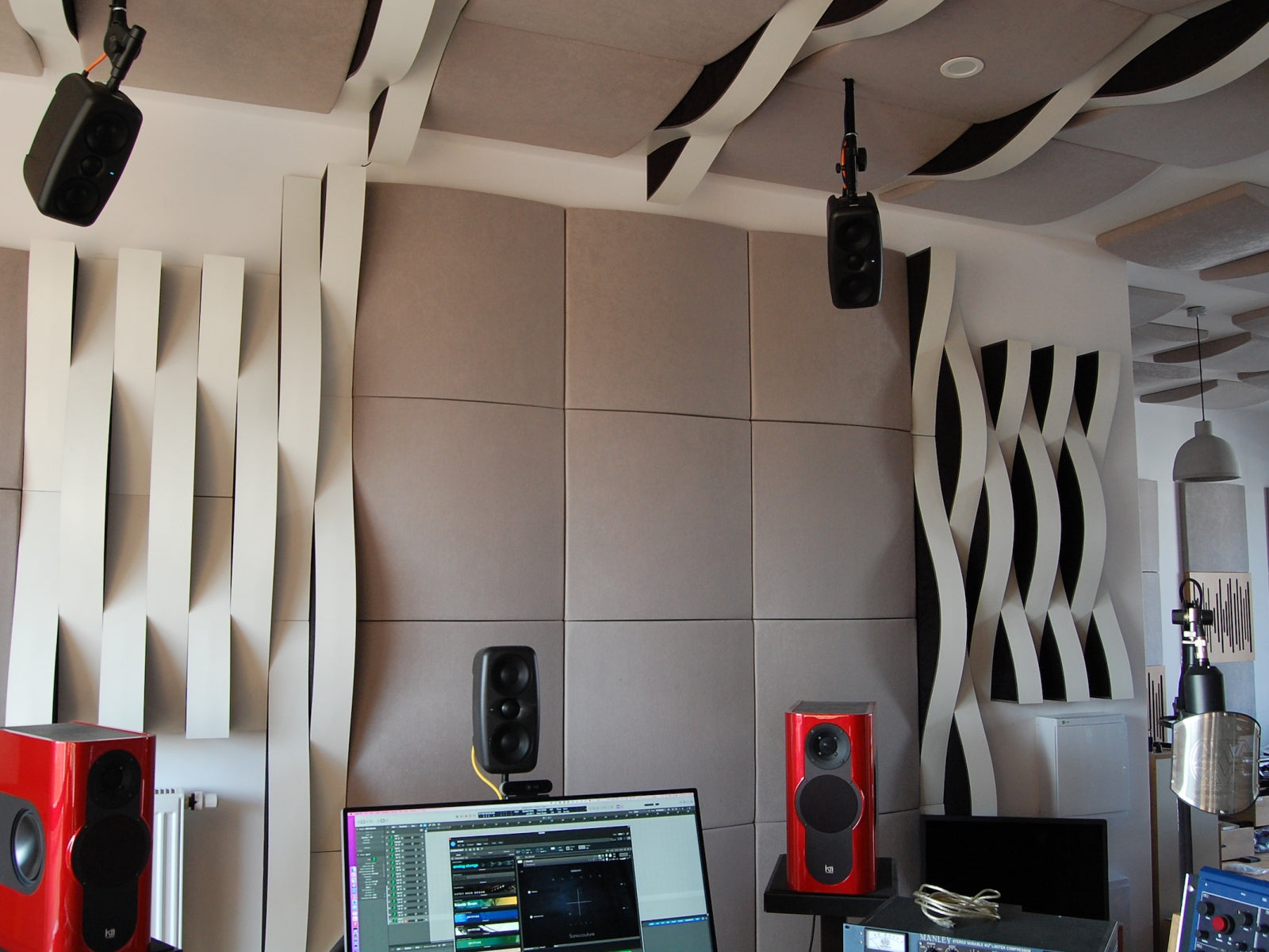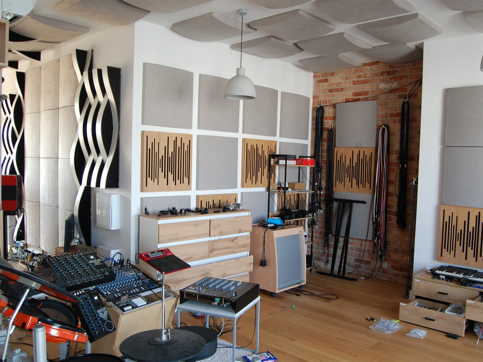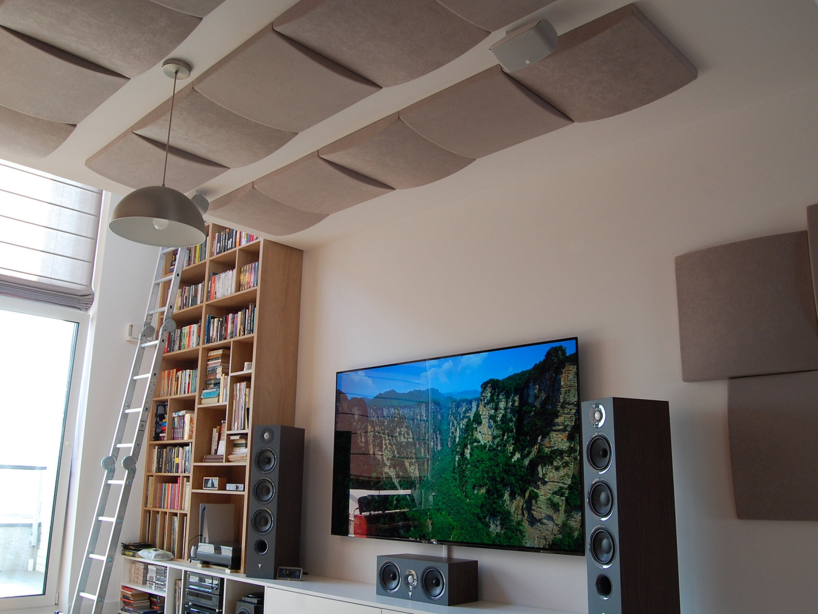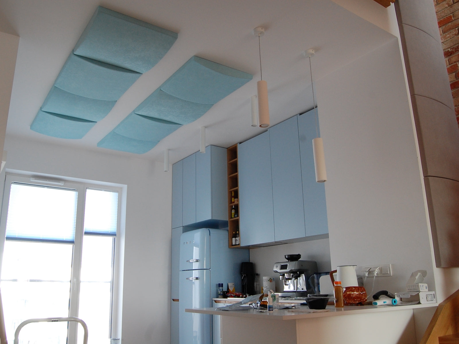 Several Cinema Round Premium panels were added in the kitchen's ceiling (part of the open apartment below the studio). The goal was to add some additional silence to the kitchen, and bedroom as well.
