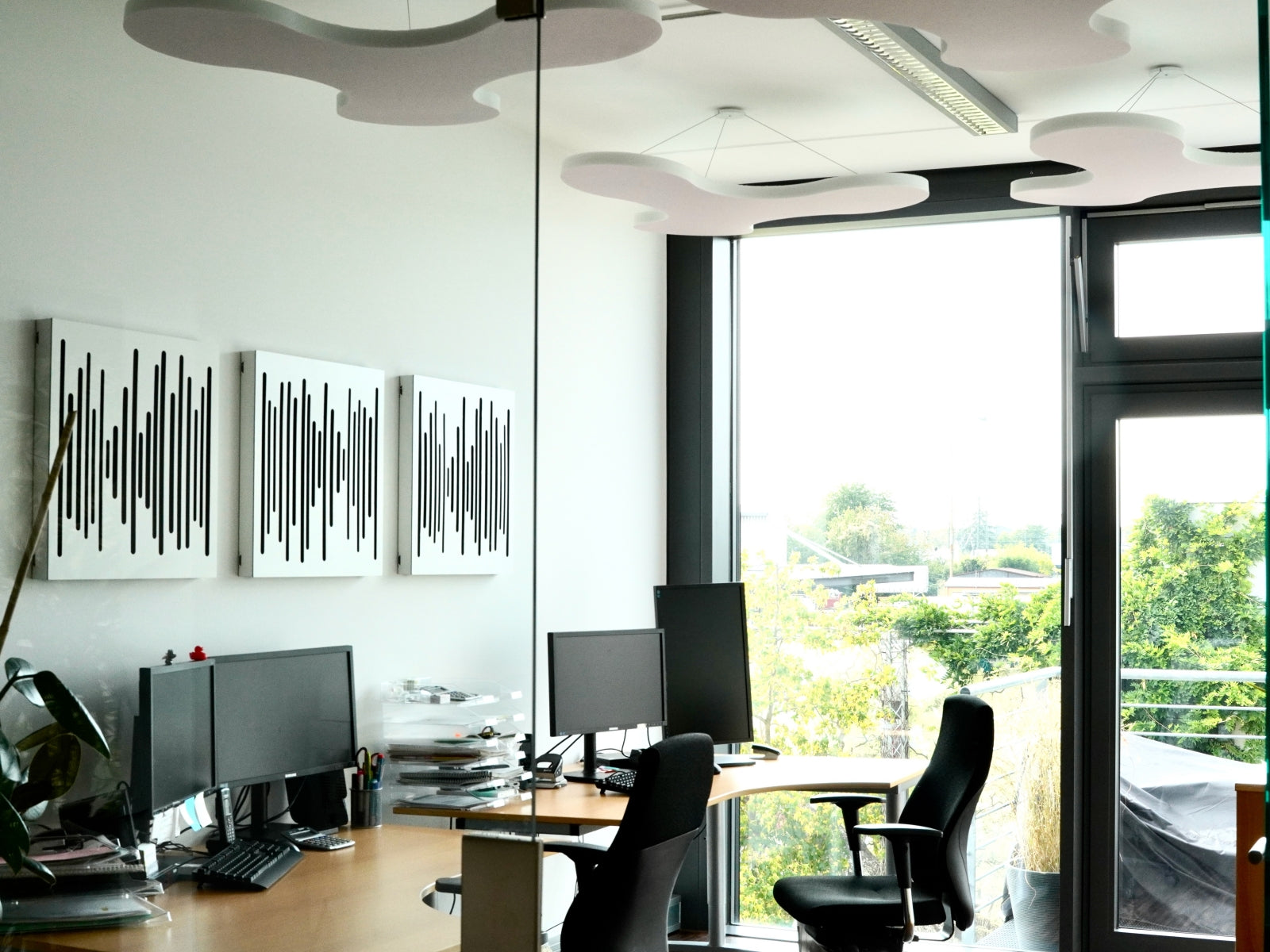 For the purposes and requirements of the Cologne agency, Schallmeister used the room acoustic elements from Vicoustic to optimize the acoustics of the office space on the one hand and to design the look of the rooms with attention to detail on the other. The optimal prerequisite for strengthening the performance of the office team and for making the large number of consultation appointments now taking place online visually and sonically appealing and competent.
