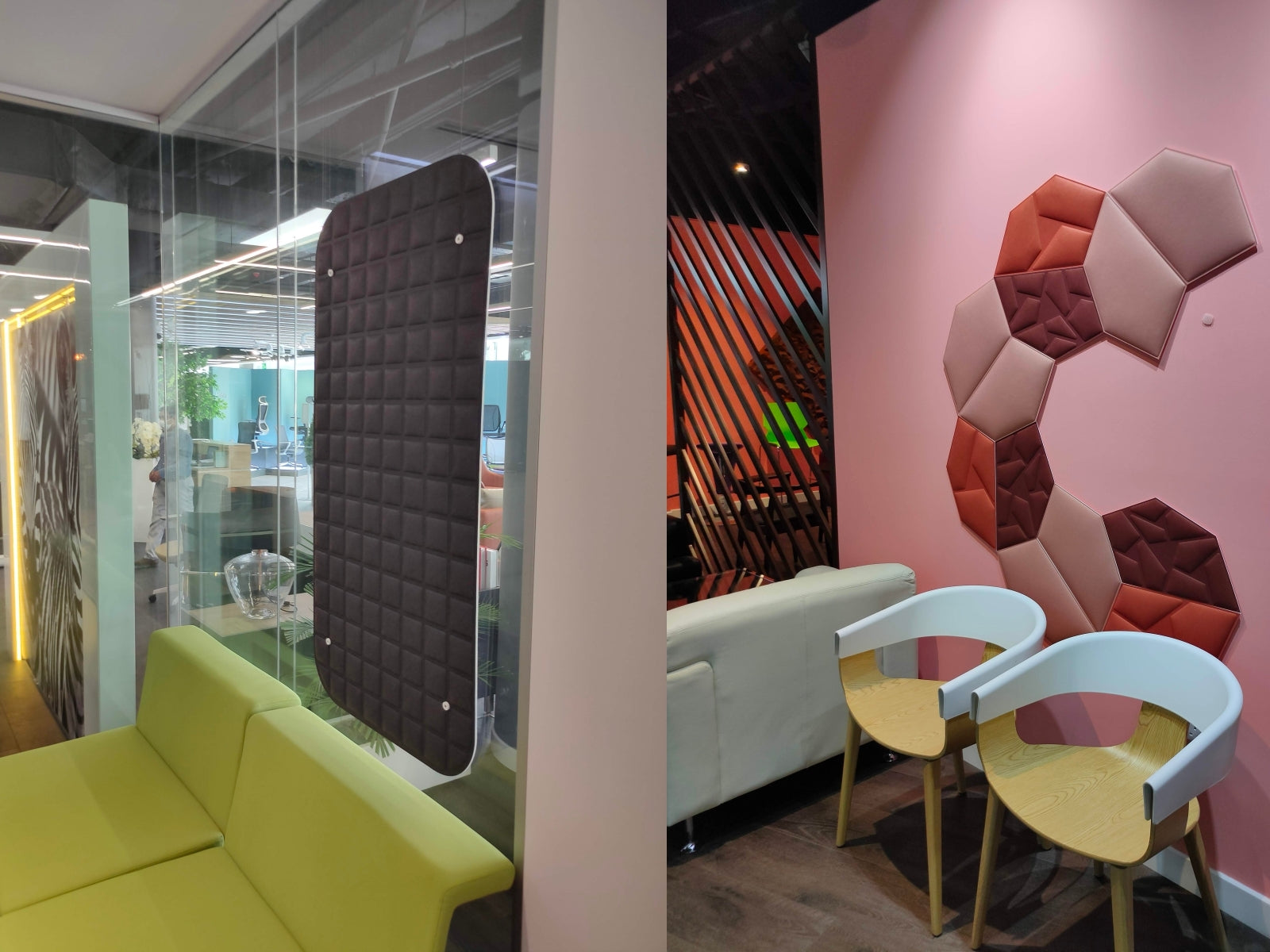 Bafco provides office furniture in Dubai, including acoustic solutions from Vicoustic. Their office received acoustic treatment solutions that also serve as a showroom for Vicoustic products.