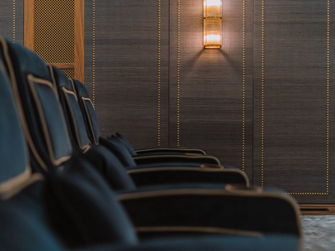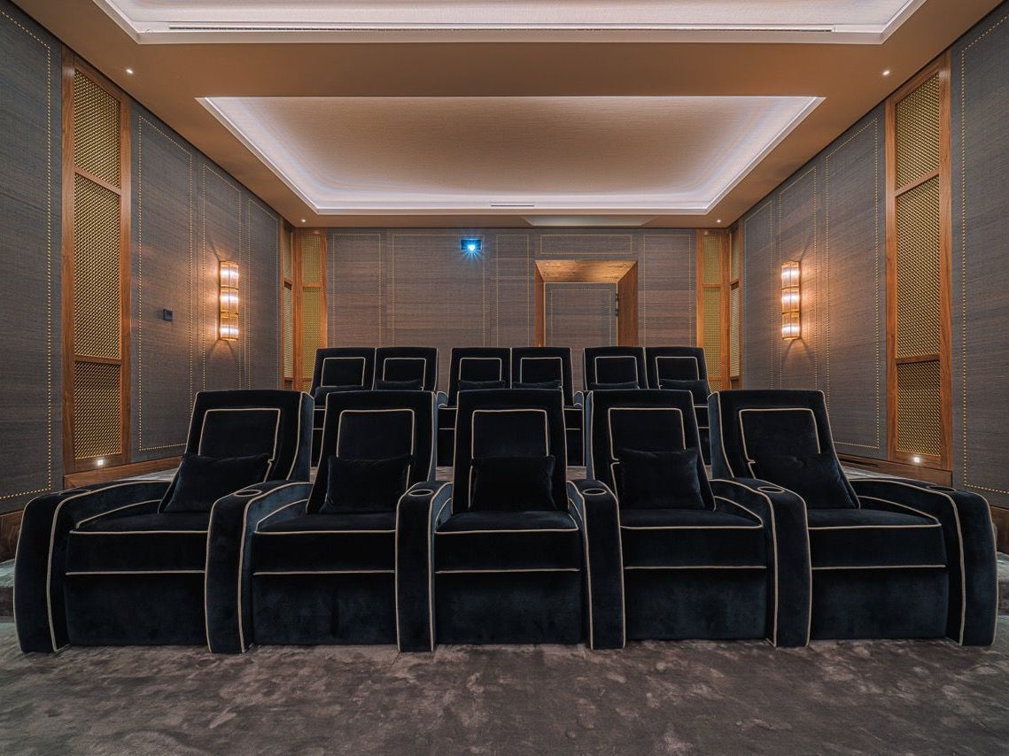 This breathtaking home cinema is in the basement of a luxurious family home, and really is the ultimate expression of luxury and elegance.