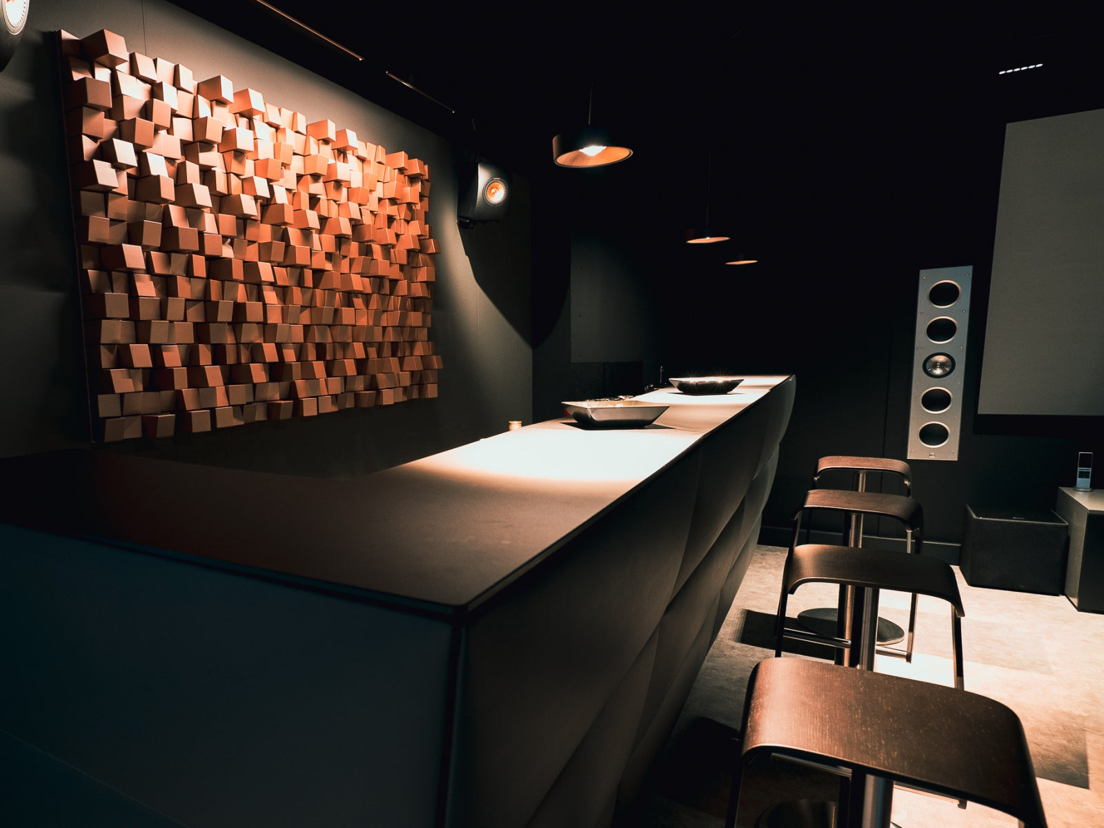 The Home Cinema showroom that B&K created in Switzerland is an example faithful to the company's innovative interior design work. Their focus is on the easy operation of your system and always work hand in hand with architects, interior designers, technical designers, fitters, lighting planners, and specialist planners for intelligent building and system control.