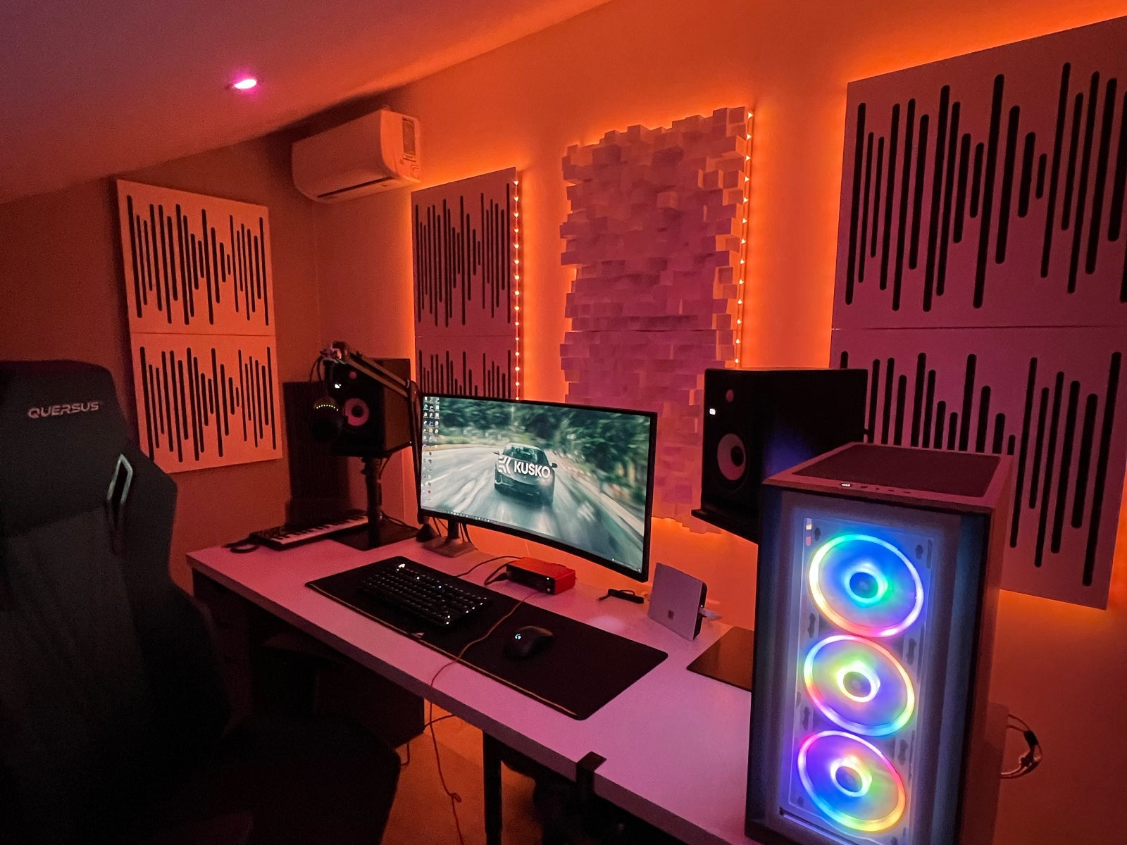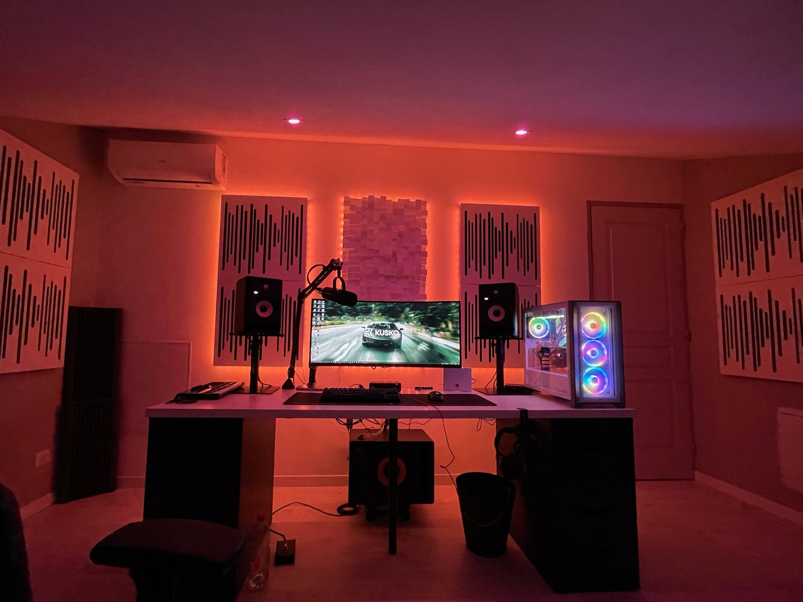 Set up ready to go. Kusko improved his new workstation. "Looks like really cool, and the sound is so much better", says the French producer DJ Kusko. With more than 3M streams worldwide, he is "really happy to work on better conditions", all thanks to Vicoustic Wavewood and Multifuser acoustic panels that compose a VicStudio Box.
