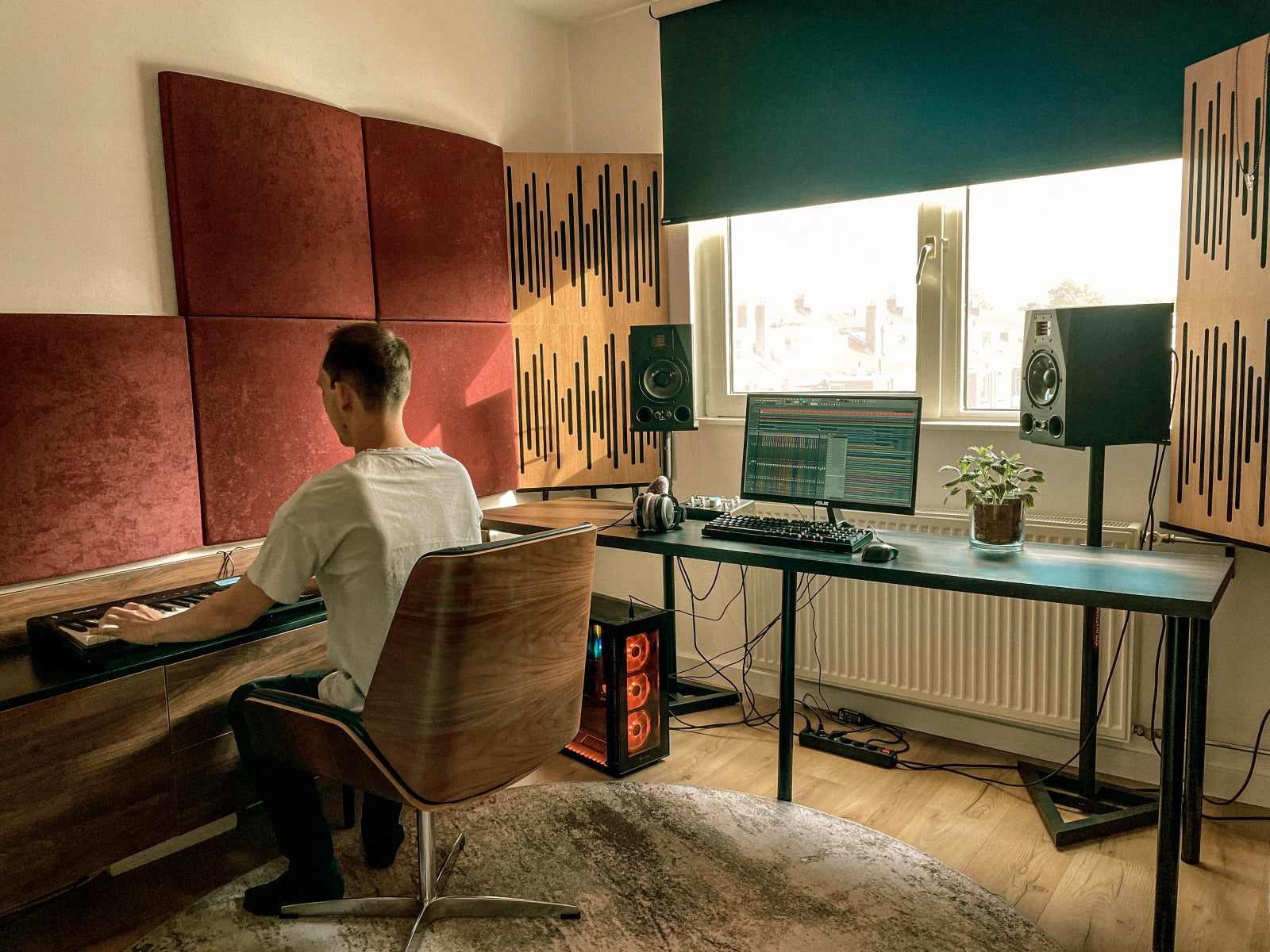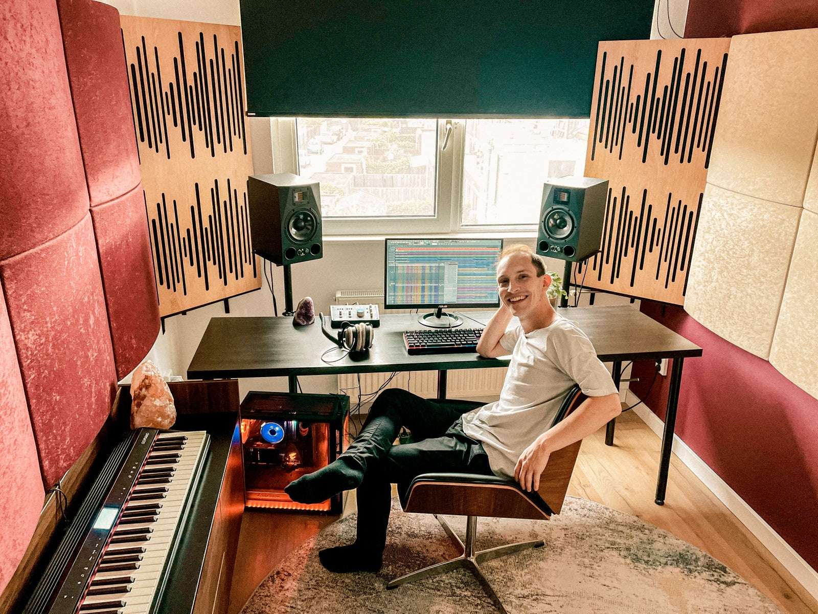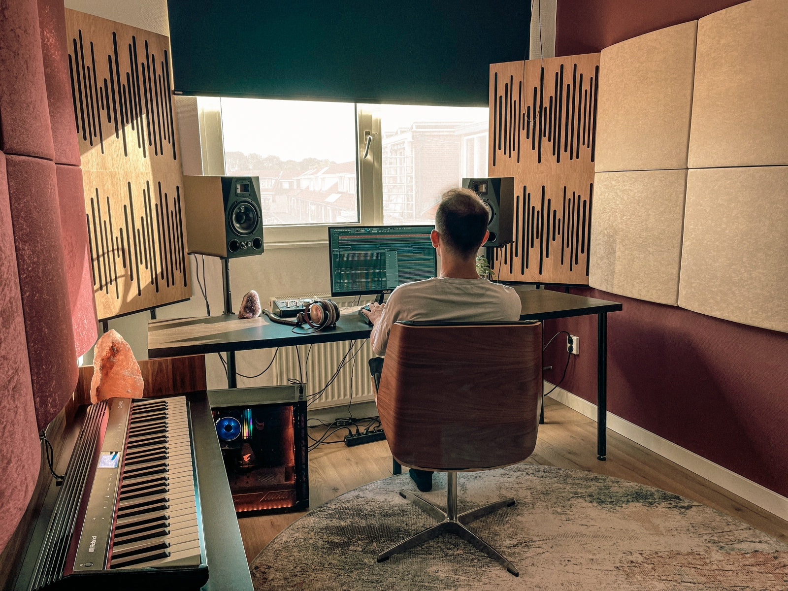 His home studio features Cinema Round Premium sound absorbers in the side walls and Super Bass Extreme Ultra serving as bass traps in the corners.