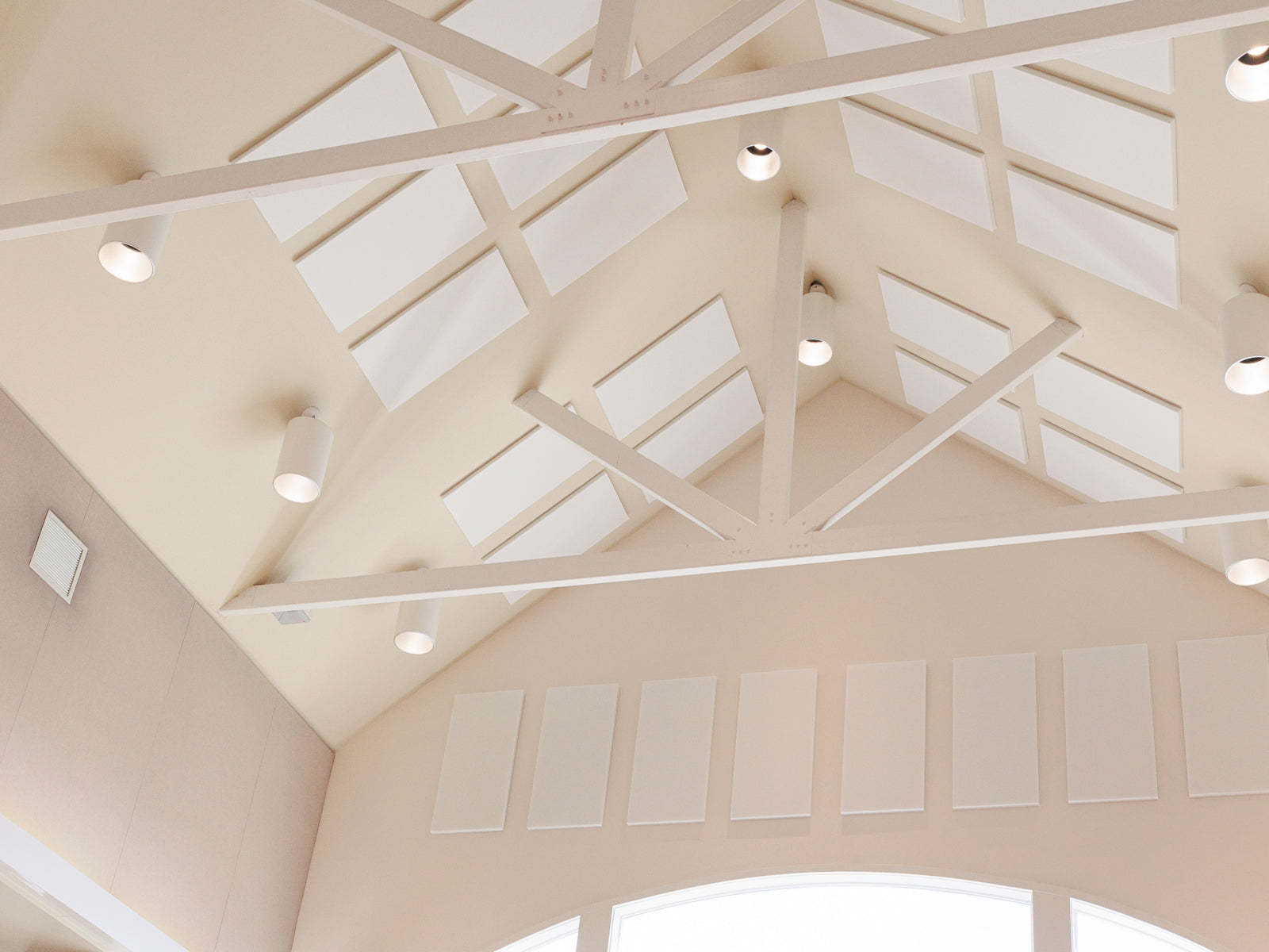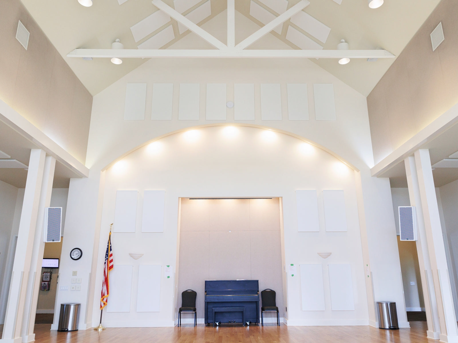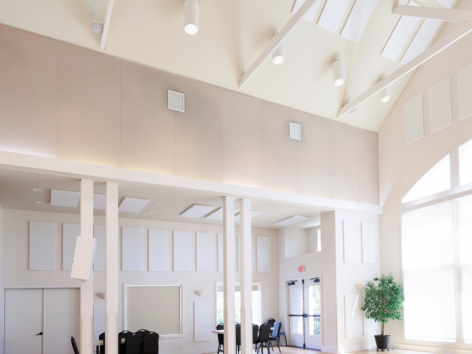 For this multipurpose room, the Project Design Team proposed the application of sound-absorbing panels on the room’s walls and ceiling surfaces, which will control reflections by taking energy from them. The panels used are Flat Panel VMT and Flat Panel VMT with VicSpacer Plus panels.