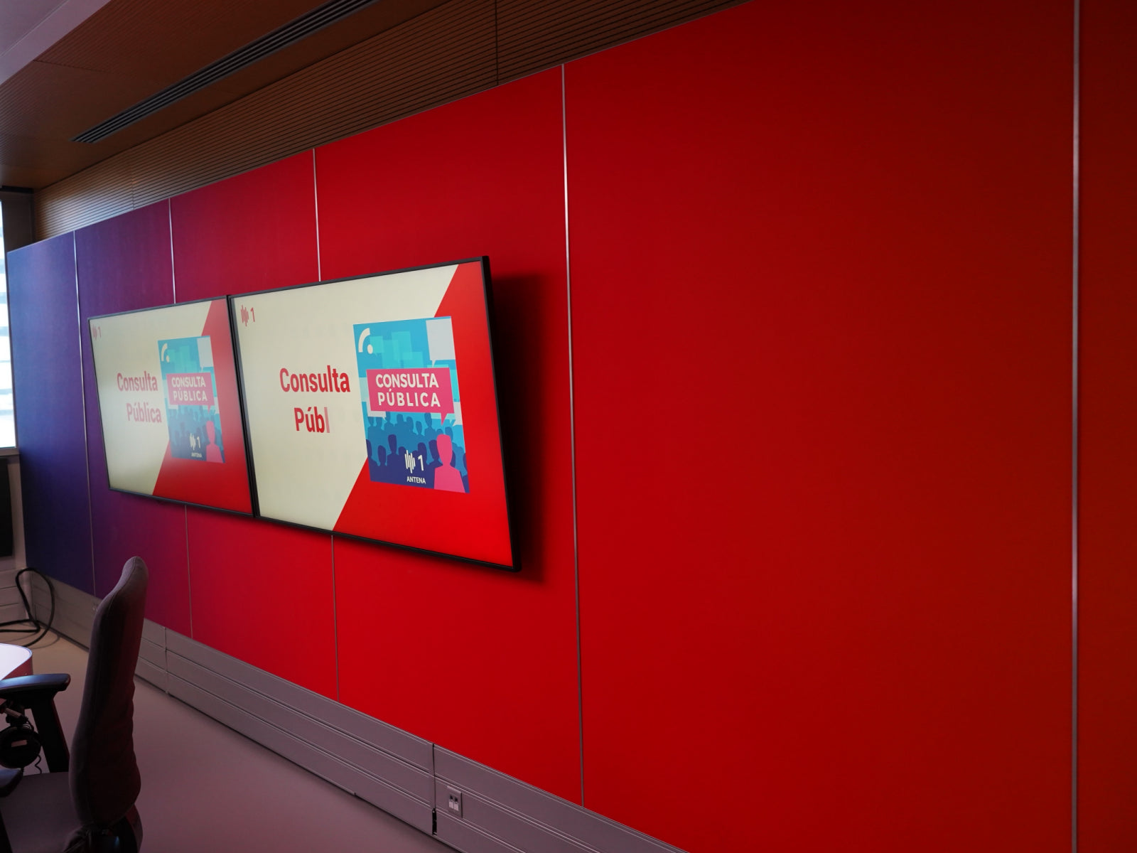 Studio 4 is a perfect blend of functionality, aesthetics, and sustainability. The customized Flat Panel VMT acoustic wall with Antena1 RTP signage colors, paired with the Cinema VMT line and acoustic elements like Wavewood and Cinema Round Premium, creates a sophisticated and eco-conscious broadcasting space for the renowned radio station.