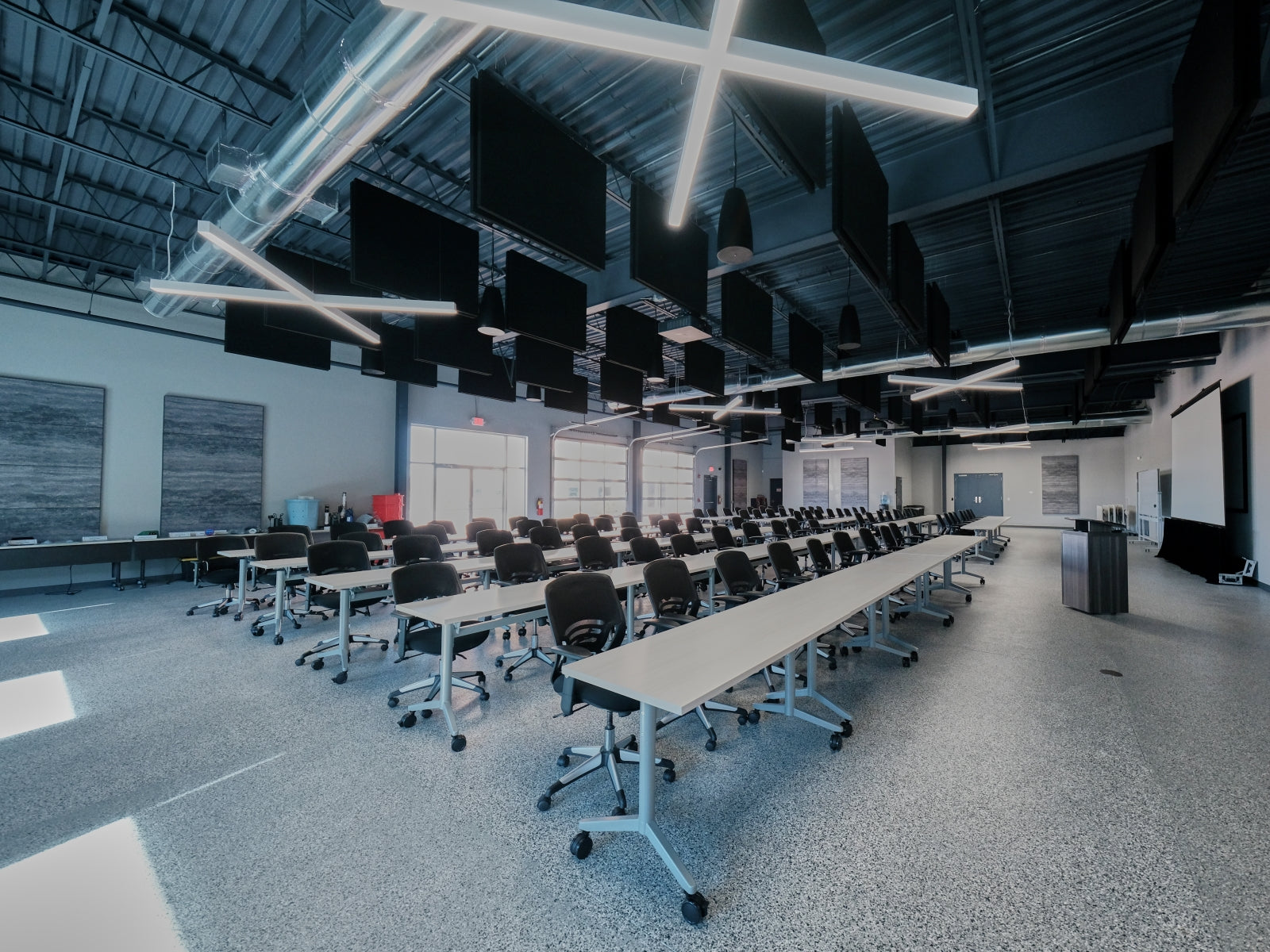 Groundworks Operations, one of the United States' largest foundation repair companies, needed to convert a large warehouse room with a 15' ceiling into a 150-employee training room, in their home office, based in Virginia Beach. Eric Rollins, Senior Director of Facilities at Groundworks Operations says: "This conversion came with a few roadblocks which are why we brought in Domes Audio Video. They were tasked with supplying us with an audio and projection system."