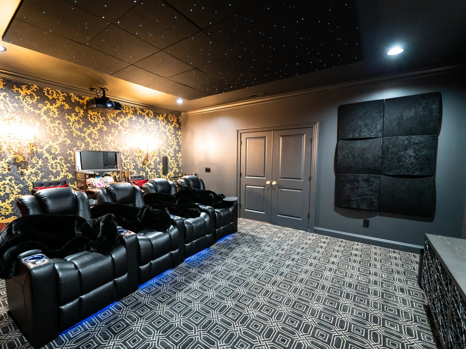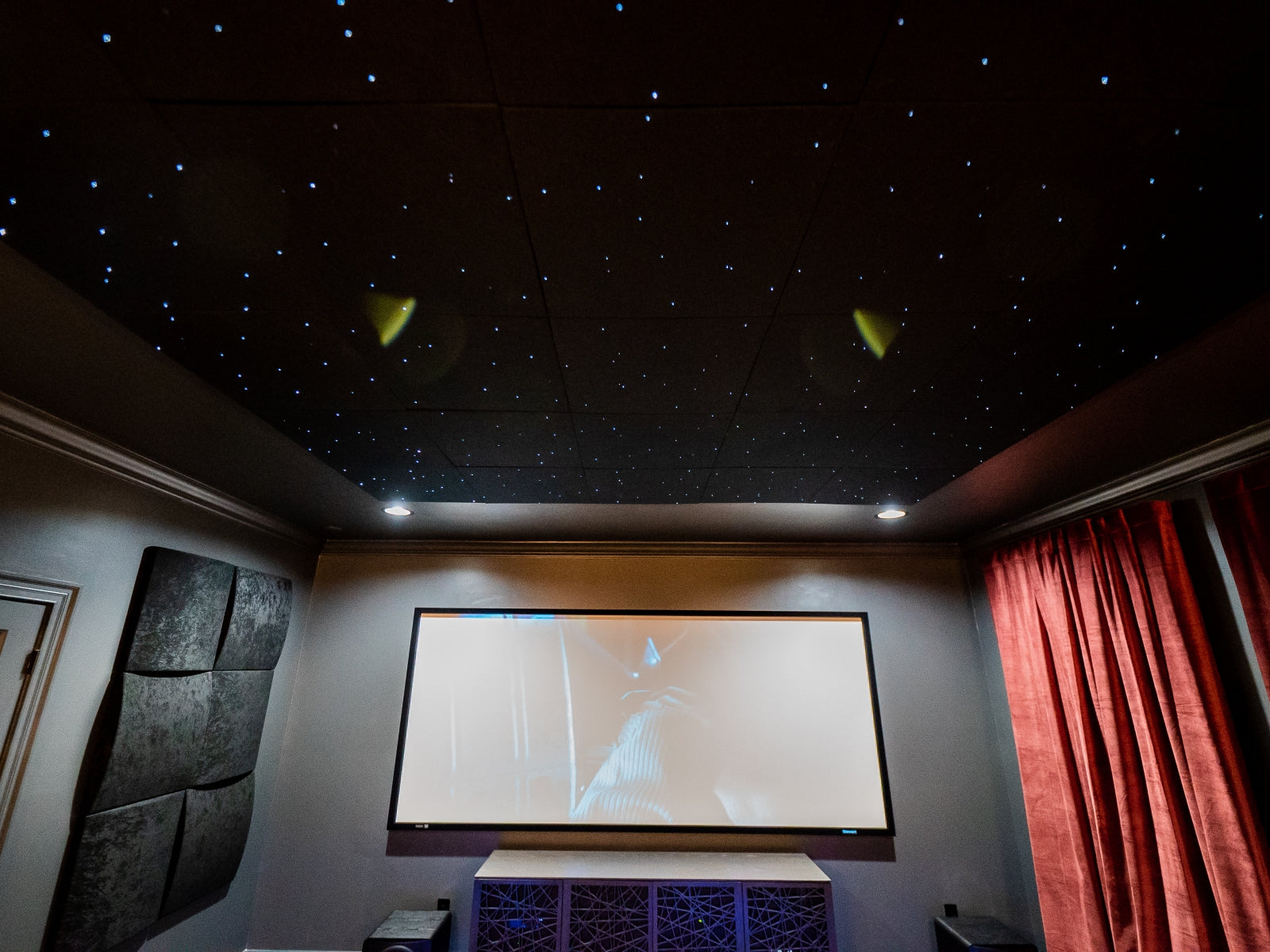 The 5.2.2 Atmos Home Cinema with acoustic treatment and star ceiling installation was developed by Audio Advice, a dealer of our Distributor in USA, Focal Naim America. To address the sound reflective effects, it was used a custom star ceiling. The installers added Vicoustic Cinema Round Premium absorption panels to the wall.
