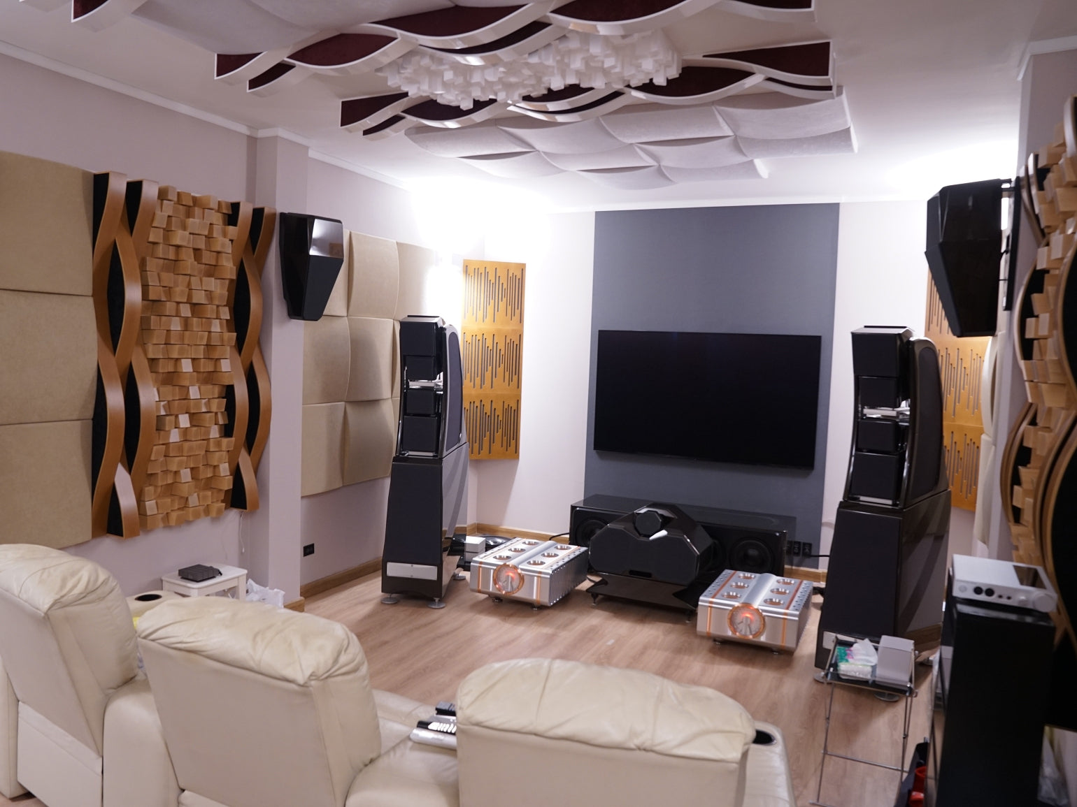 Rooms such as this are prone to have sound field anomalies related to room modes, that can cause audible effects in the room’s sound field at low frequencies. For low-frequency acoustic treatment, Vicoustic has recommended the use of Super Bass Extreme, for bass trap in the corners of the room.