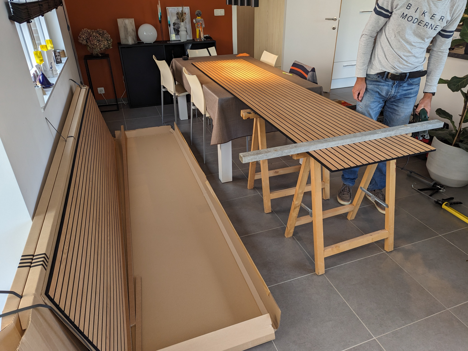 “The first cut was frightening and stressful but at the end very successful. We could cut perpendicularly without any issue and even create holes for the plugs easily. Aligning the panels side to side revealed to be child's play and invisible.”