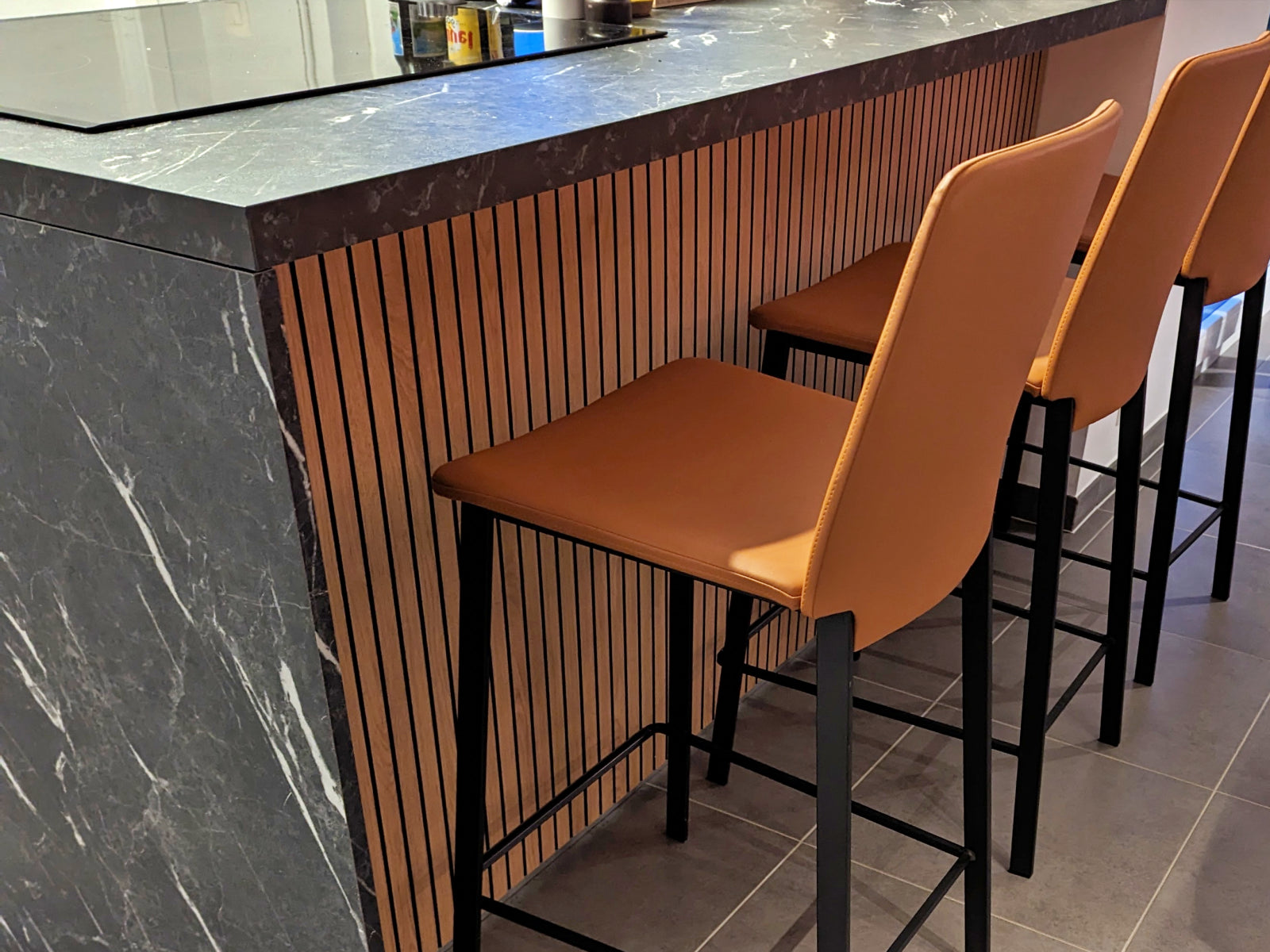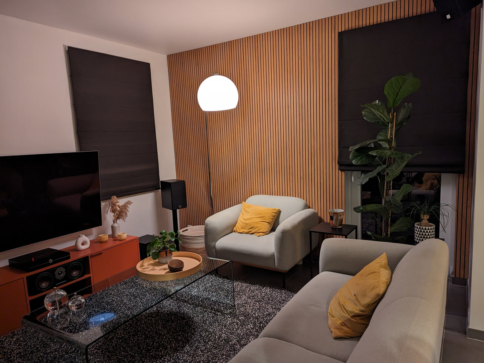 Antoine decided he wanted VicStrip decorative panels on his home. He installed the panels on a wall of the living room and under the bar counter. In the end, he was won over by the solution: