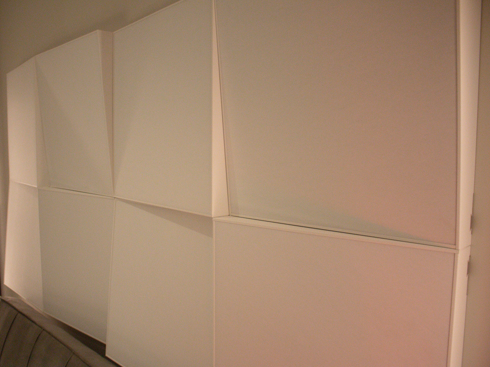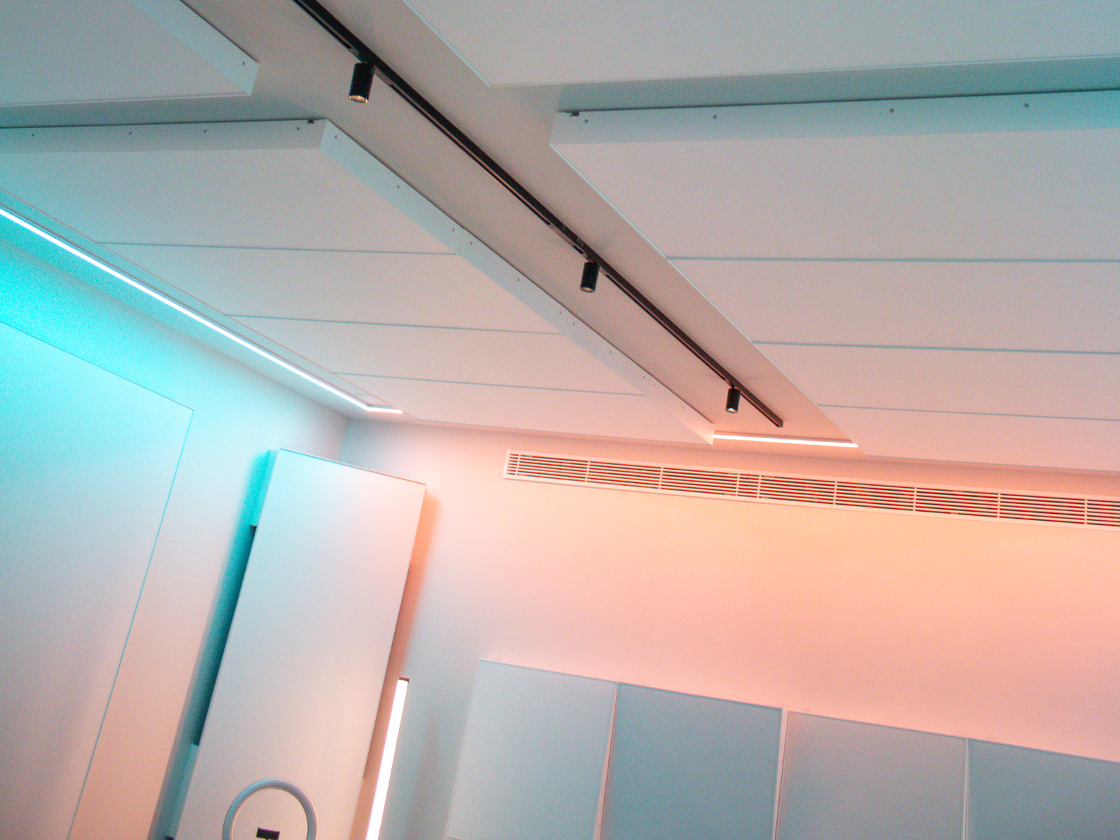 Both the front wall and the rear wall were treated with the Cinema Forte VMT ultimate sound absorbers, which bring also an unmatchable design to the room.