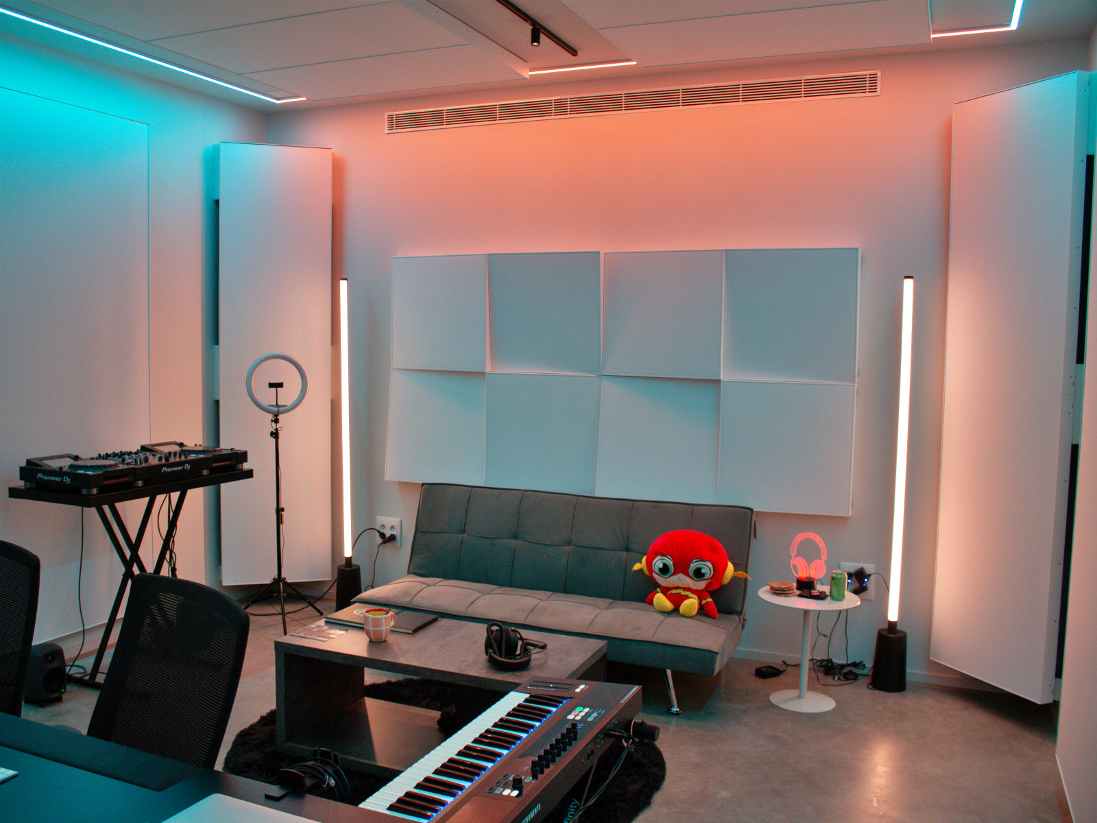 The studio of Juliann James presents an ingenious design by making use of the VicSpacer developed to enhance Flat Panel VMT innovatively. They installed the high panels as bass traps in the corners of the room, customizing them to be highly absorbent for the low frequencies emitted by the PMC speakers. To achieve this, they essentially combined two VicSpacers, extending the height of the panels to better address the bass frequencies. Additionally, a key element in this setup is that most of the panels were mounted slightly away from the wall, creating a gap that enhances their ability to trap sound reflections. “This ingenious design allows us to effectively manage the acoustics in the room without the need for exceptionally thick panels”, says the music producer.
