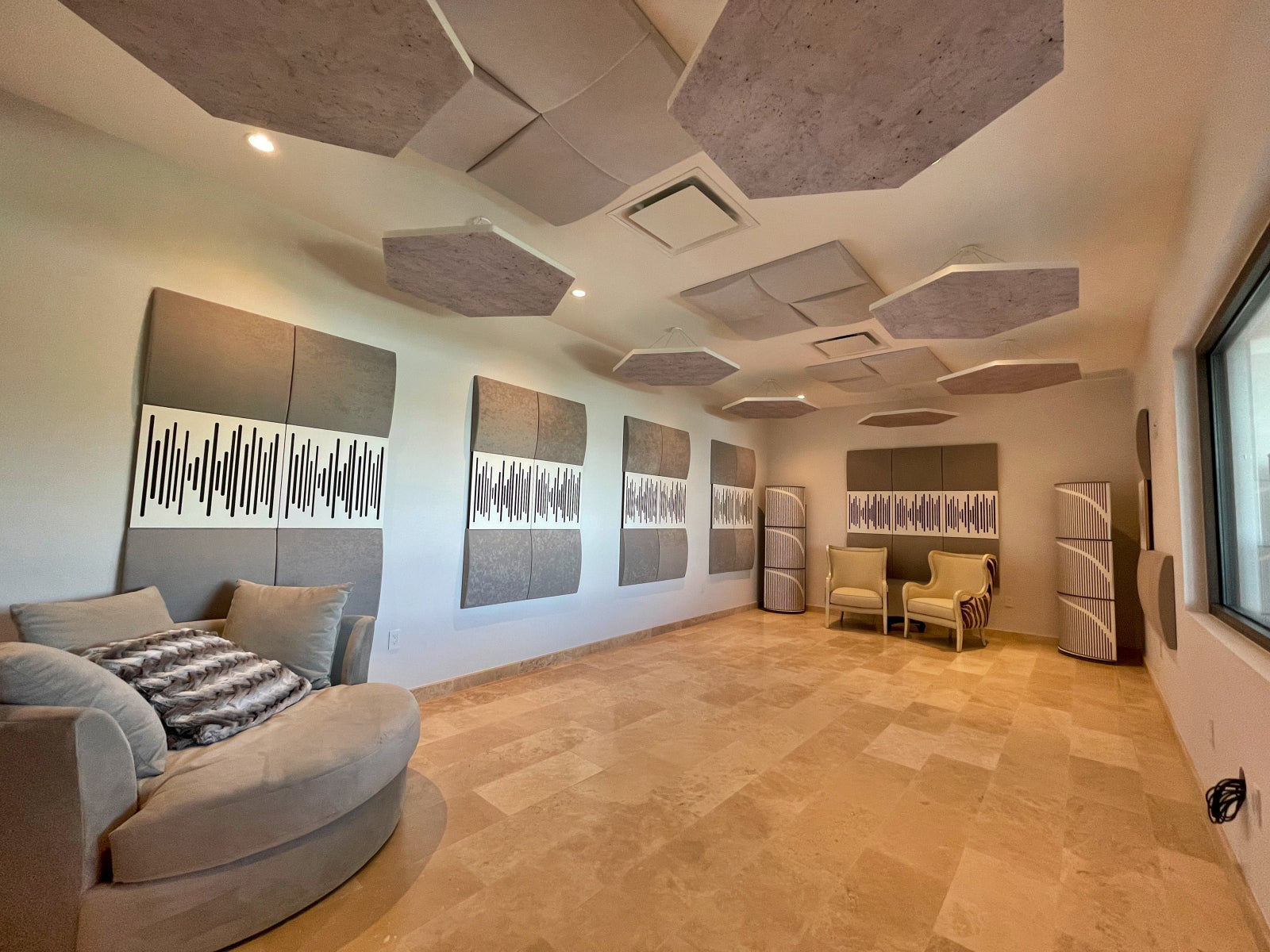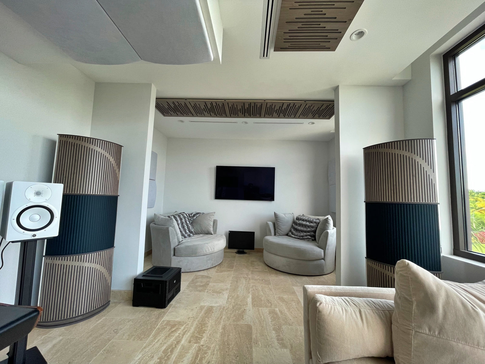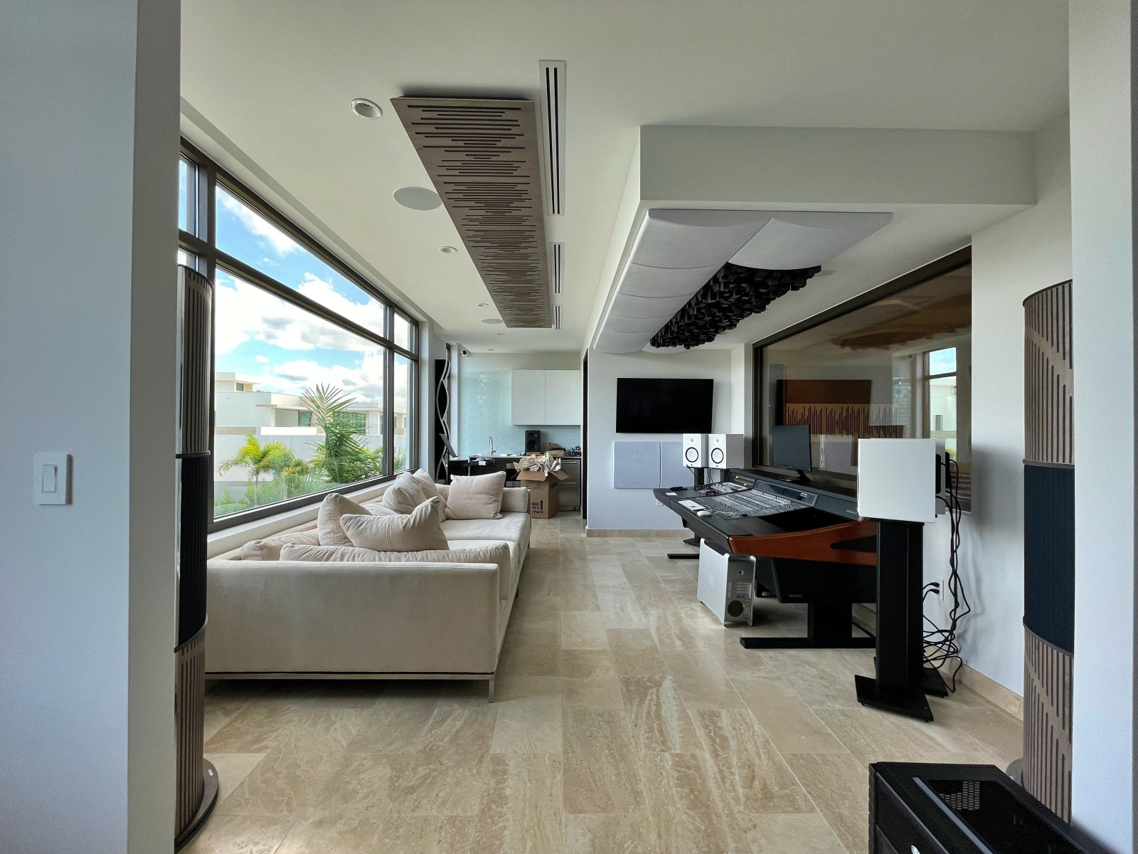 A private home studio inside a mansion in Dorado, Puerto Rico, bridges the gap between a professional music recording studio and a luxury residential setting. The secret lies in the use of state-of-the-art Vicoustic solutions that mix elegant design with acoustic performance.