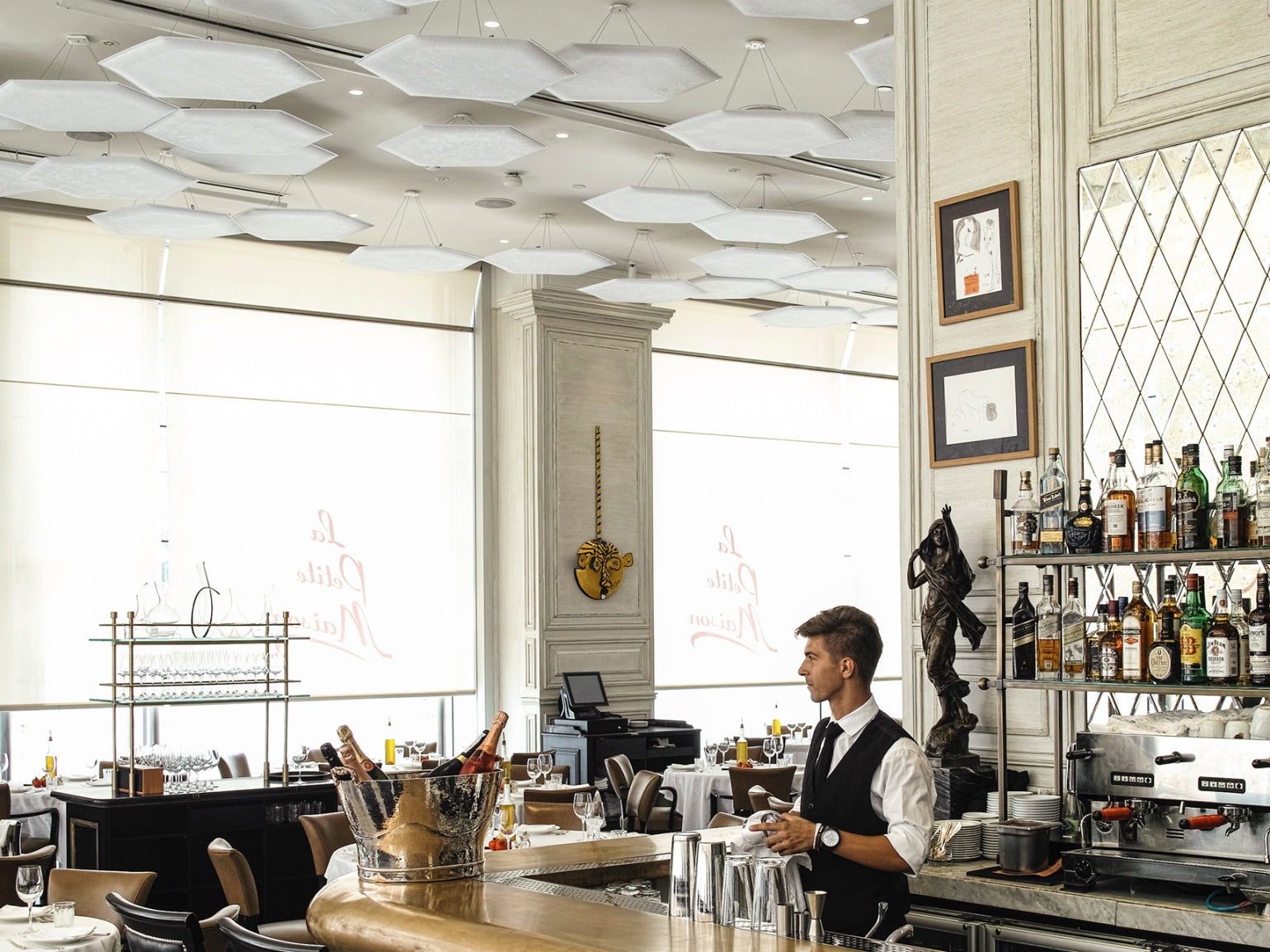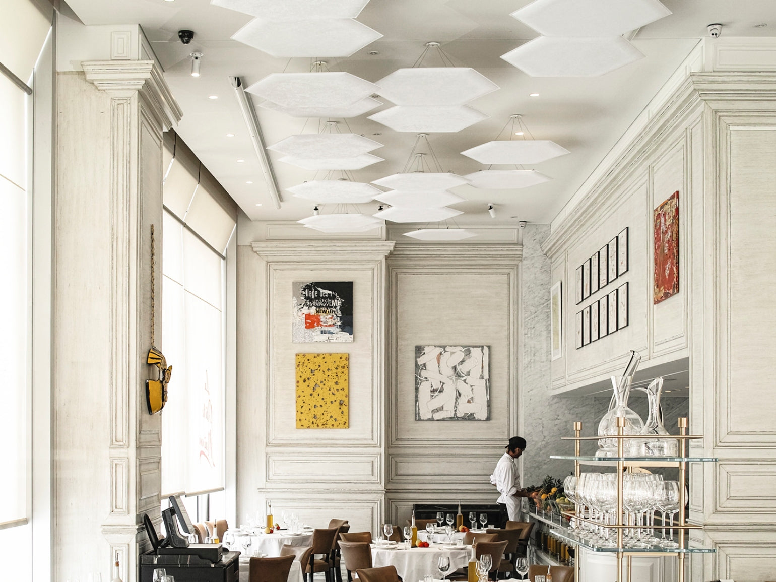In this project, ViClouds were the perfect solution to match the design of the restaurant. The product has been updated to the ViCloud VMT 3D Hexagon Natural White.