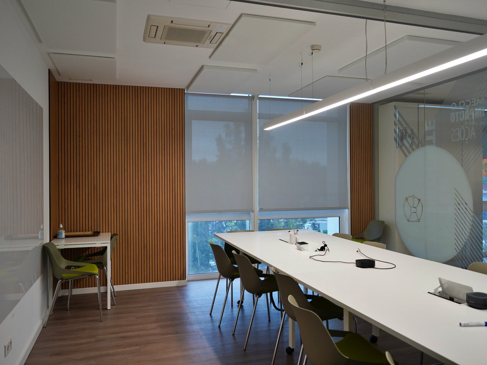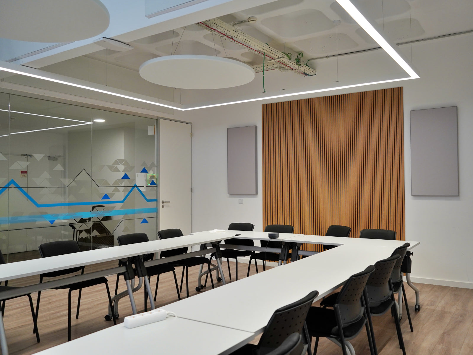 VicStrip and VMT stand out as solutions for workspaces in the Artens Meeting Room and the Management Room at Leroy Merlin's offices in Lisbon, Portugal. Both spaces were refurbished with an acoustic treatment proposal designed by the Vicoustic Project team of Acousticians to properly treat the Reverberation Time inside the rooms.