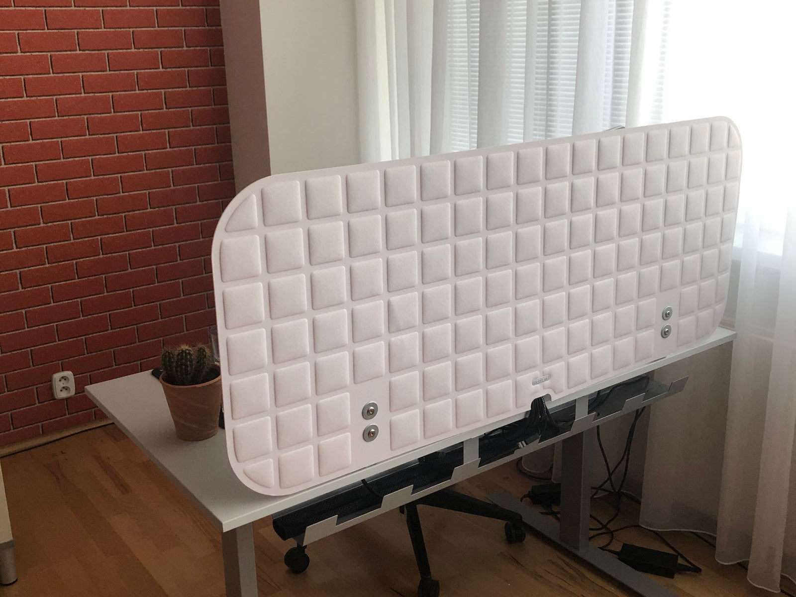 For the office desks, MediaTech applied VicOffice Desk Dividers in an edition they named as Pro, smartly connected to the furniture. VicOffice Desk Top was developed to help you managing privacy between working places. It will help you to visually divide working places and at the same time, since it has great sound absorption characteristics, it will help you controlling the acoustics of your office.
