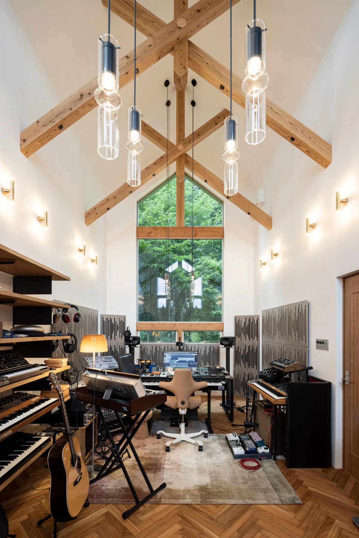 Also, I used to be a member of an orchestra, and I know the importance of natural resonance, so I did not want to make the room completely dead. I didn't need a completely dead environment like a normal recording studio, but I wanted to create a room with a sound that I liked. So, I built a room with very high ceilings and planed to add some sound absorption panels in stages as needed.