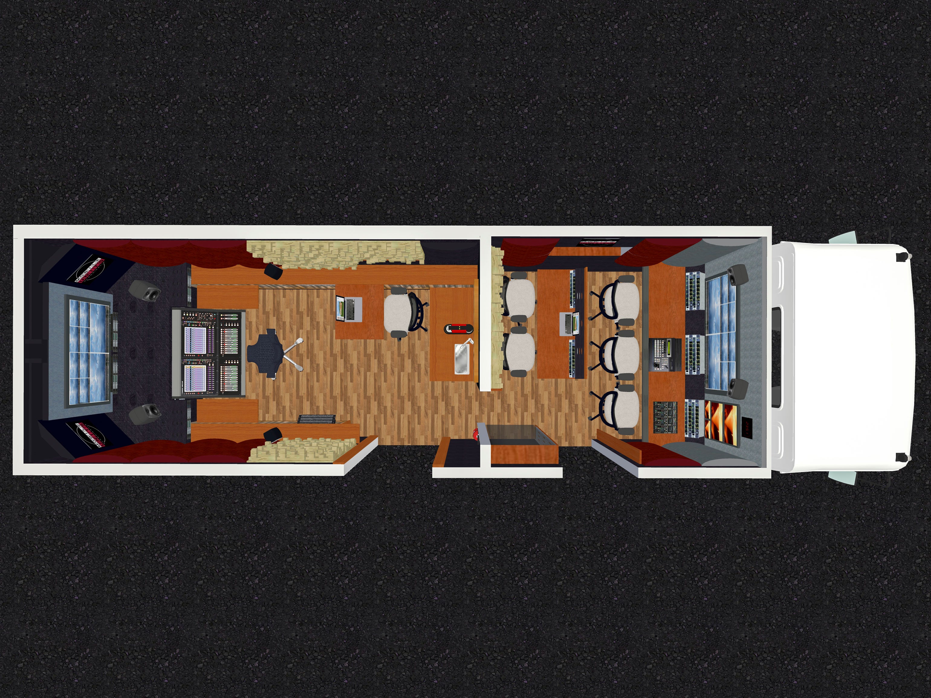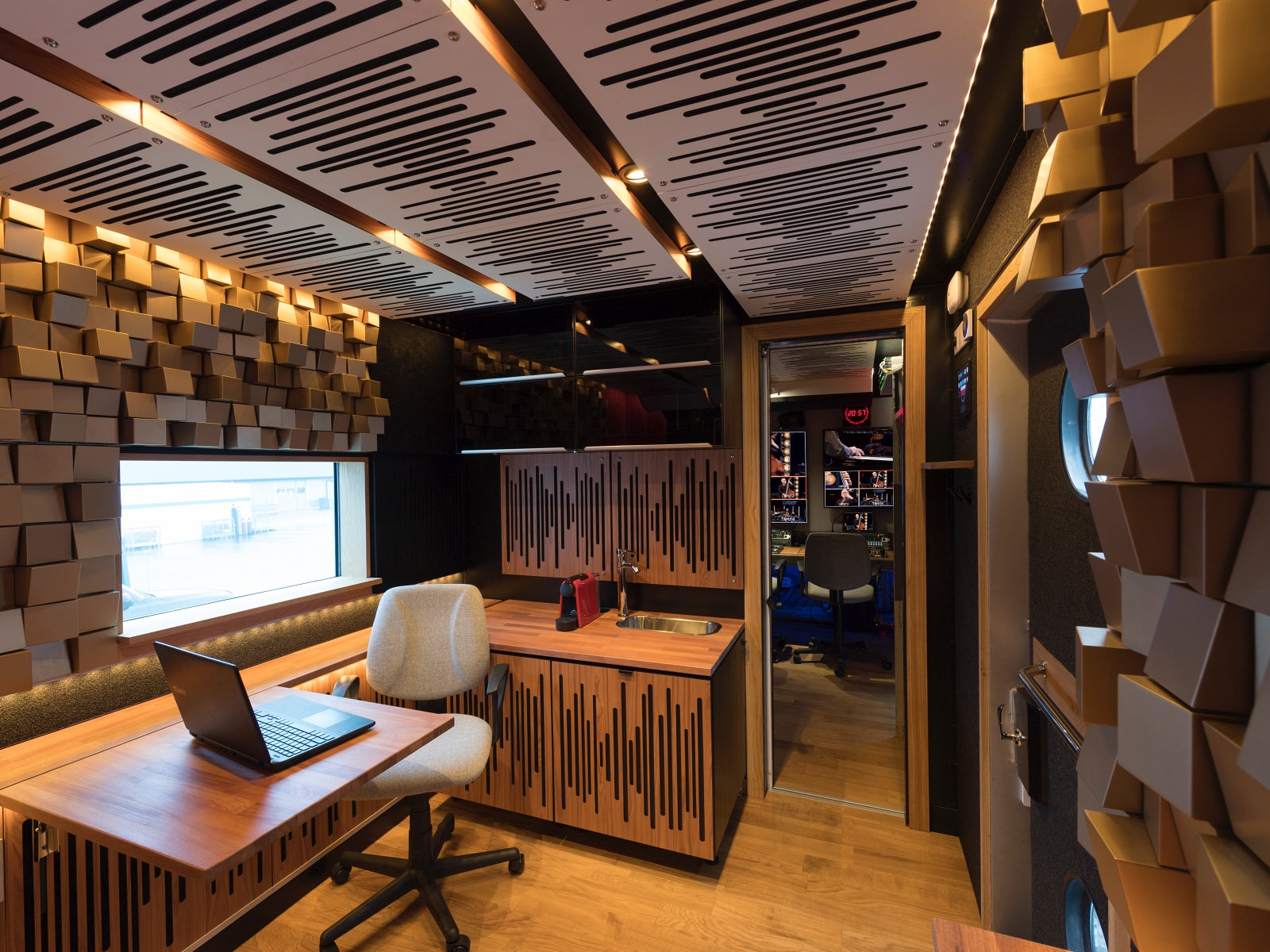 We thank Mobile Units Scandinavia for this inspiring installation, proving there are no boundaries to use acoustic solutions everywhere you go, either for a TV and streaming production unit or for a music artist on tour.