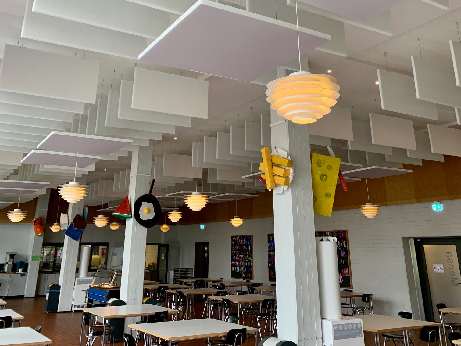 The installation was completed on time for the start of school during the holiday season. The built-in elements fit perfectly into the room and create a harmonious overall picture with the existing furnishings. The result can be heard. With the effective use of Vicoustic eco-friendly and sustainable products, pleasant room acoustics were created that invite you to linger and relax during your stay in the cafeteria.