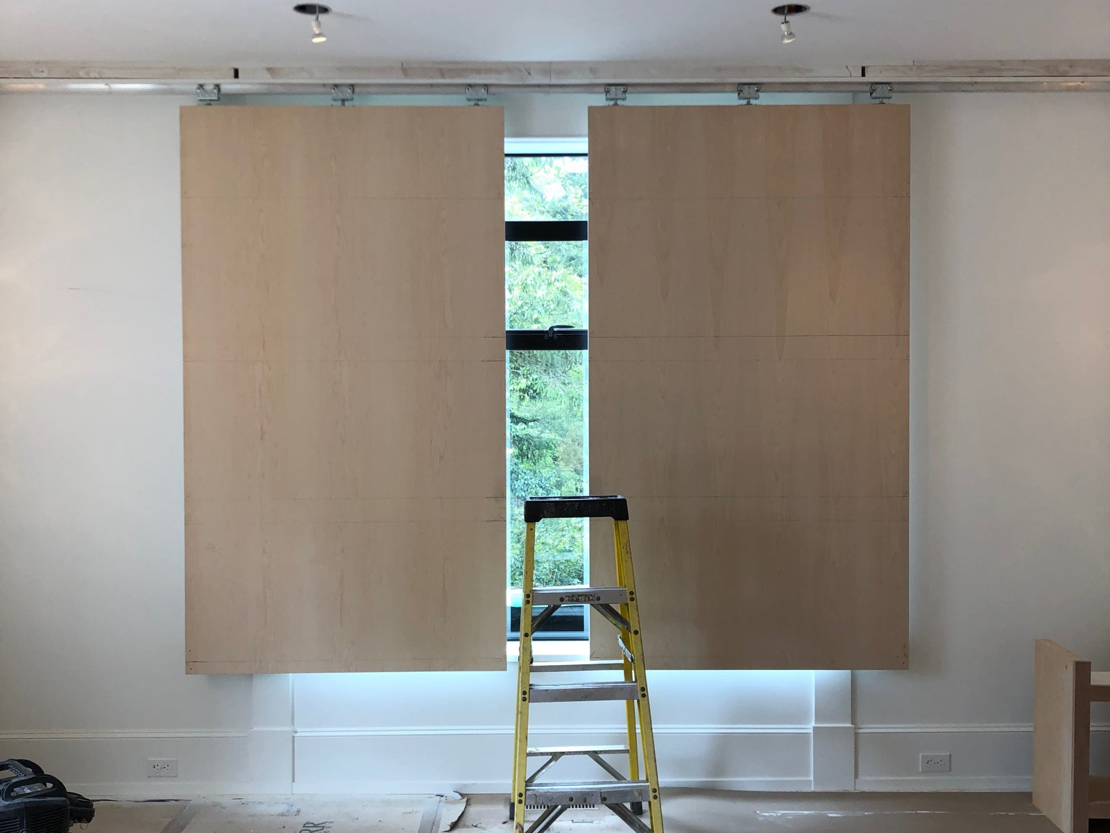 In order to keep the versatility of the room with a window and its use as a listening room, the idea was to develop a sliding structure that could cover the window. This rail with mounting doors also supports the Multifuser Wood MKII panels, since the window location was the most accurate place to set the diffusers.