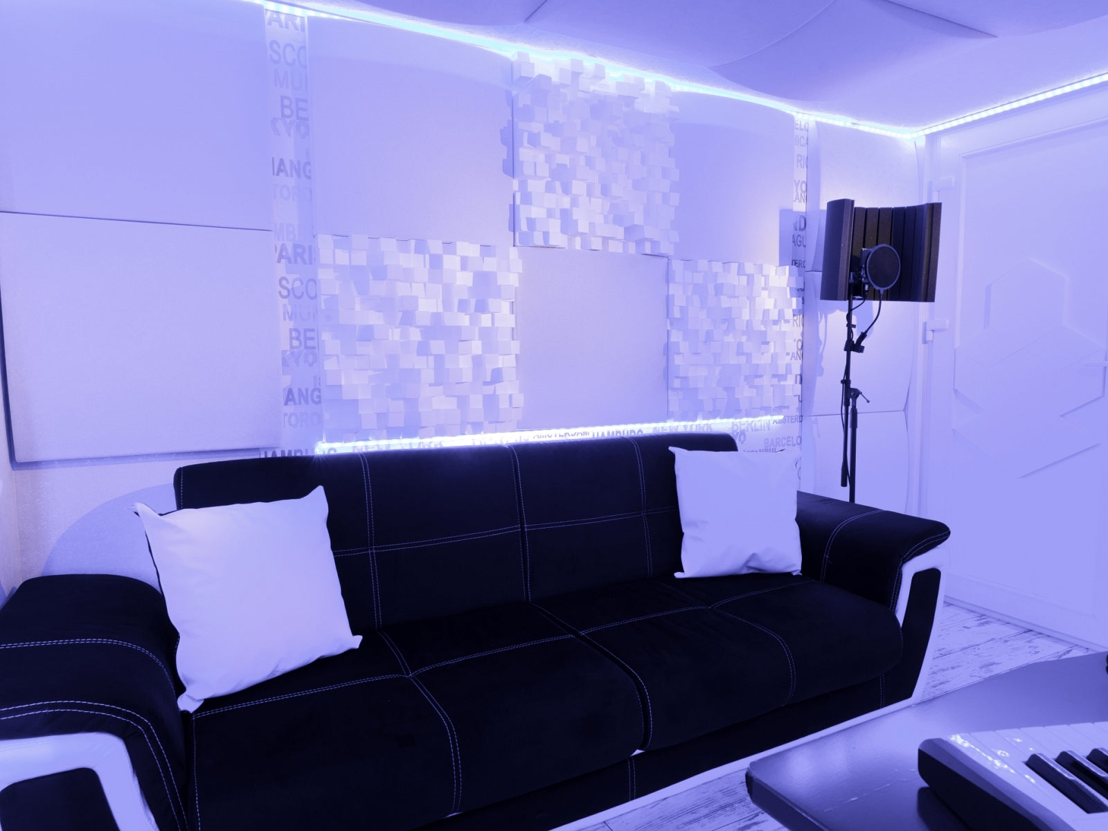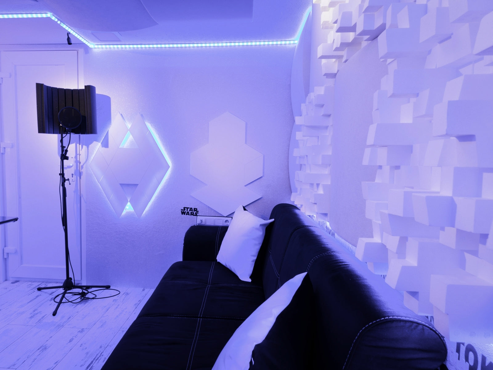 The acoustic treatment was made with the best products in the field of acoustics produced by Vicoustic. One of the key elements was the use of Vixagon Mini combined to create a unique design, like you can see in the installation video: