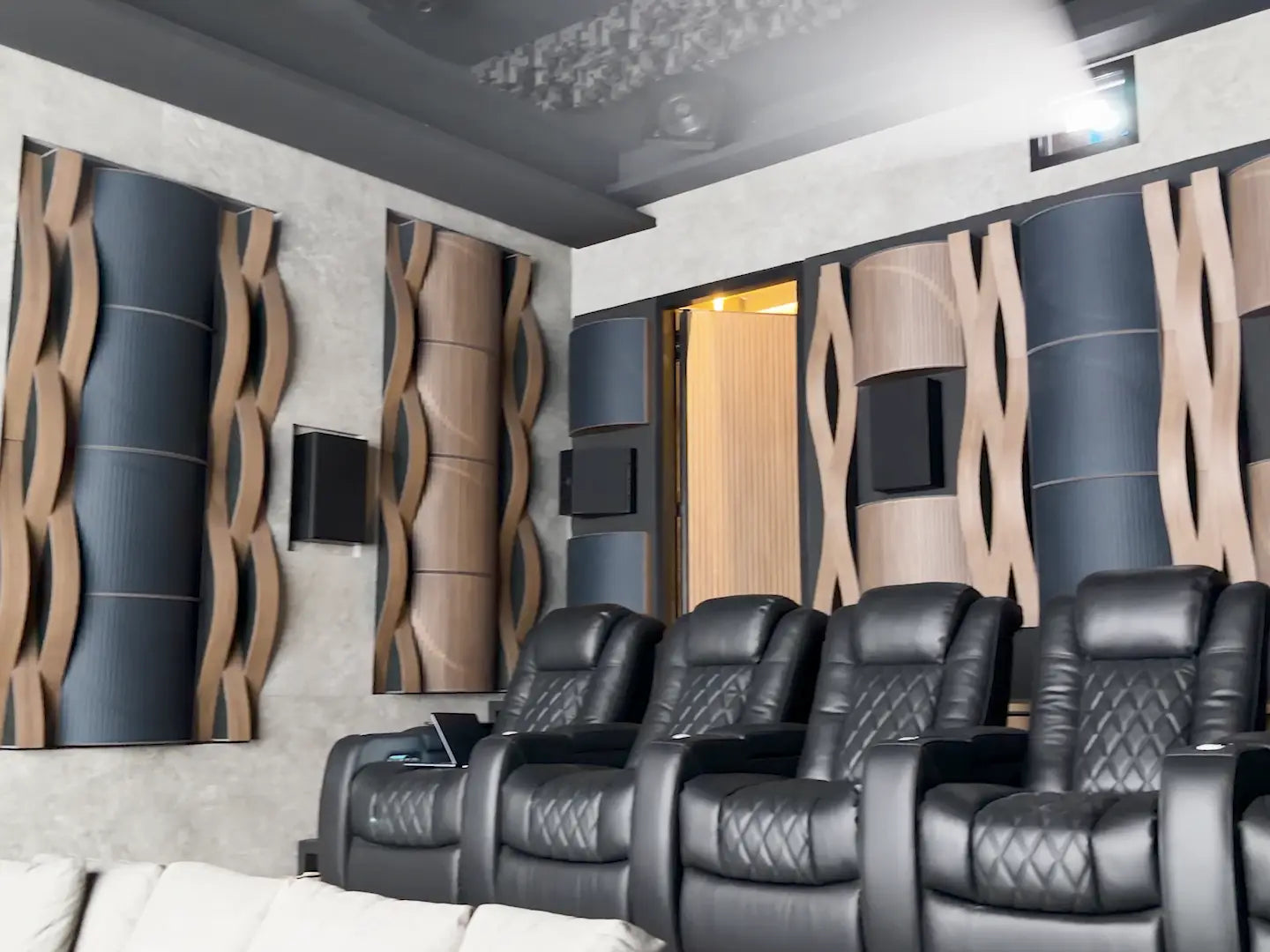 Designed by Vicoustic Project Team in conjunction with our talented partners at AV Daksma, and implemented by iarkitektura, this home theater was built with a singular goal: to create an immersive, professional-grade auditory experience without sacrificing the room's sleek, modern aesthetic.