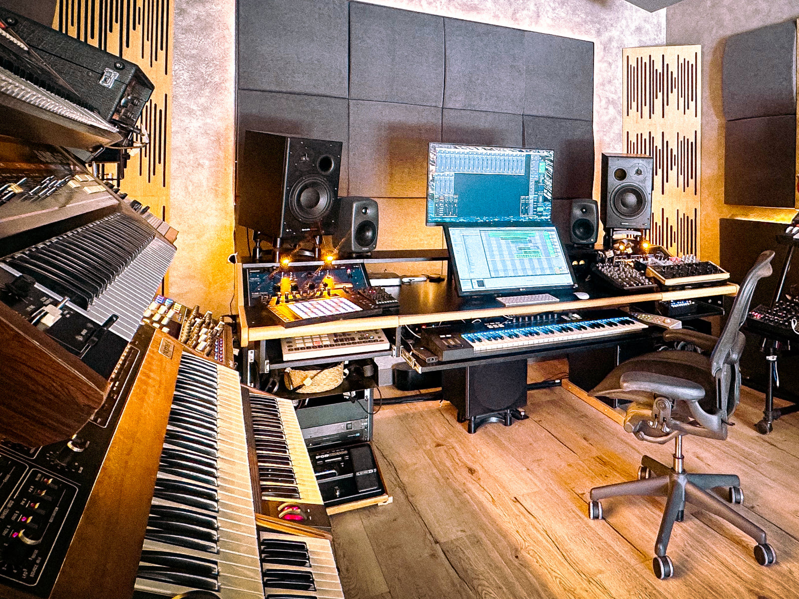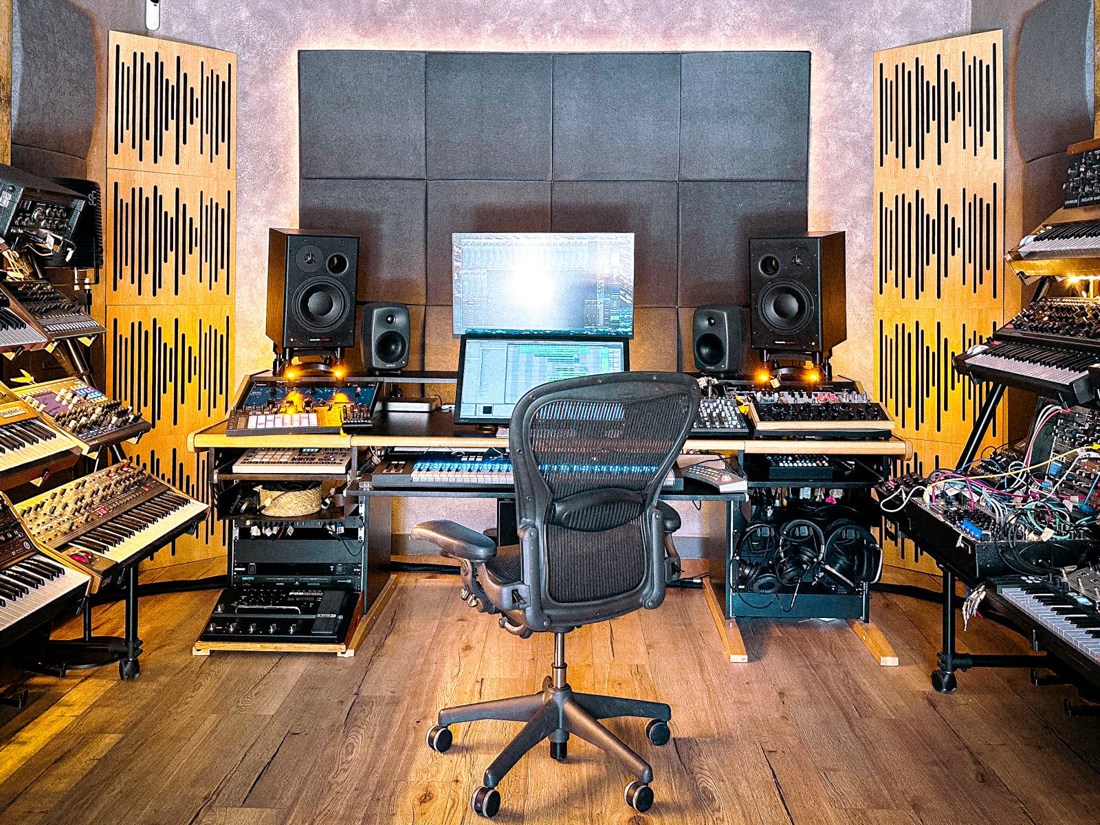 The studio combines cutting-edge digital audio tools with state-of-the-art analog gear to ensure a smooth, efficient workflow. The studio is equipped with a carefully curated selection of acoustic instruments, modular synths, and iconic vintage synthesizers, catering to the needs of electronic music artists, film composers, and visual media creatives alike.