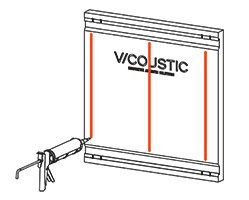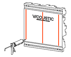 Bonding: Cut the tip of the glue nozzle at 45º with a box cutter. Apply the adhesive glue on the back of the acoustic panel using a pressure gun. Leave a margin of 4 to 5 cm between the panel edges and the line of glue. Do not wait longer than 10 minutes after applying the glue to attach the panel to the surface. Place the panel in a suitable position on the wall or ceiling. Once in the desired place, press firmly against the surface for 15 seconds.