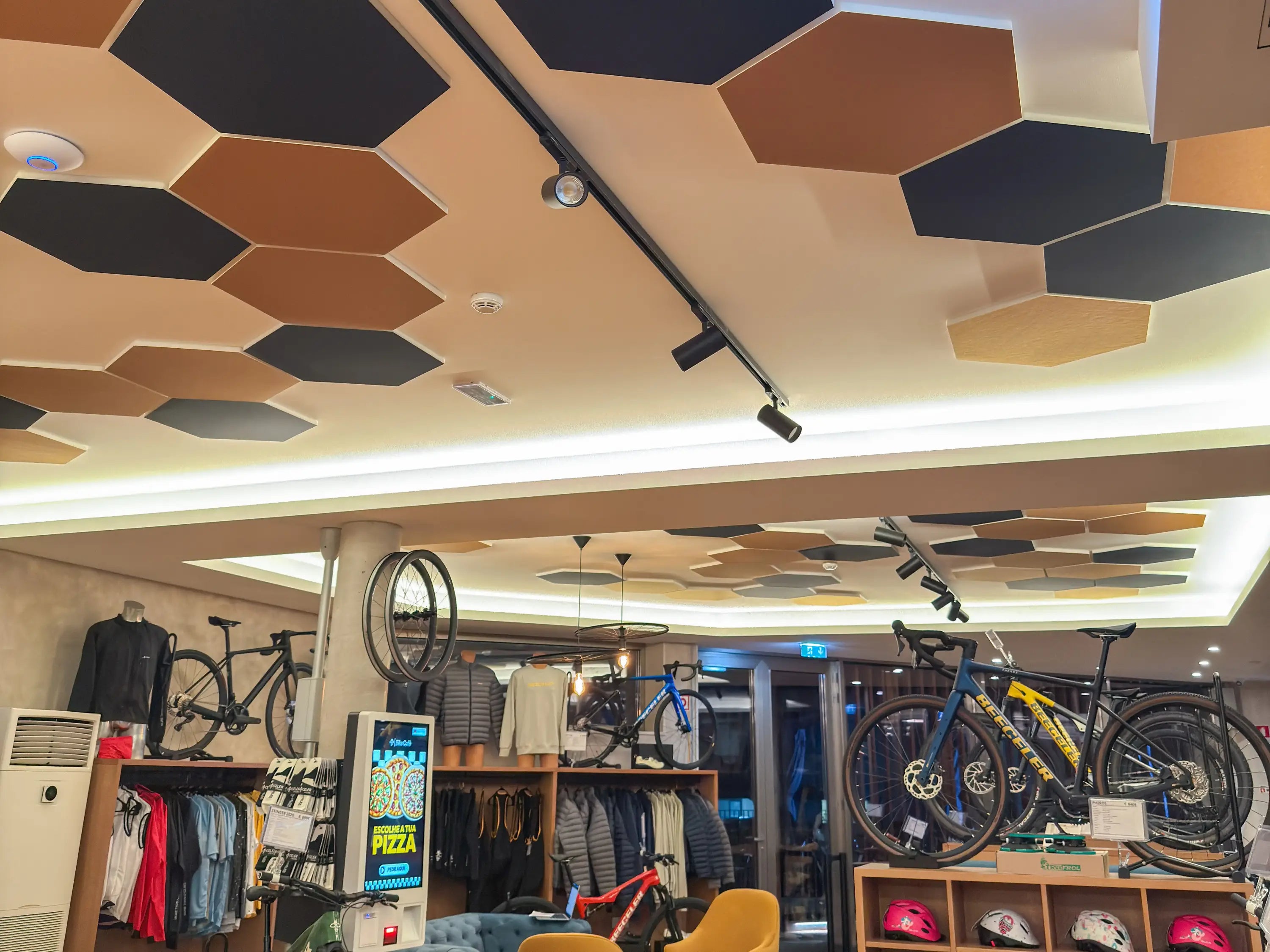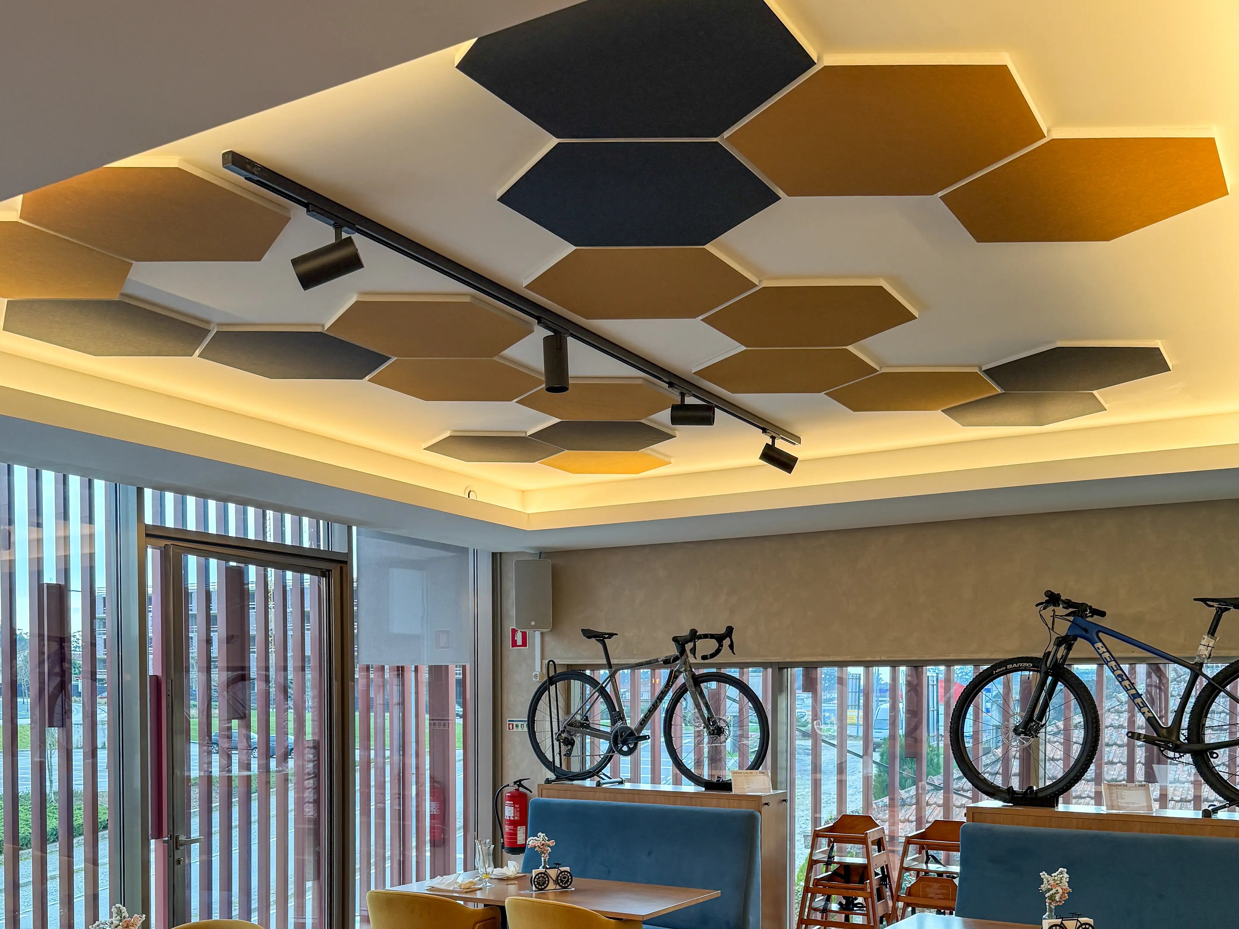 O design de interiores de um restaurante ou de um café é essencial para atrair clientes, mas é o conforto do espaço que os faz querer ficar. No recentemente inaugurado Bike Café (Beeceler) em Paços de Ferreira, uma arquitetura impressionante e um tratamento acústico de excelência trabalham em conjunto para criar uma experiência do cliente verdadeiramente imersiva.